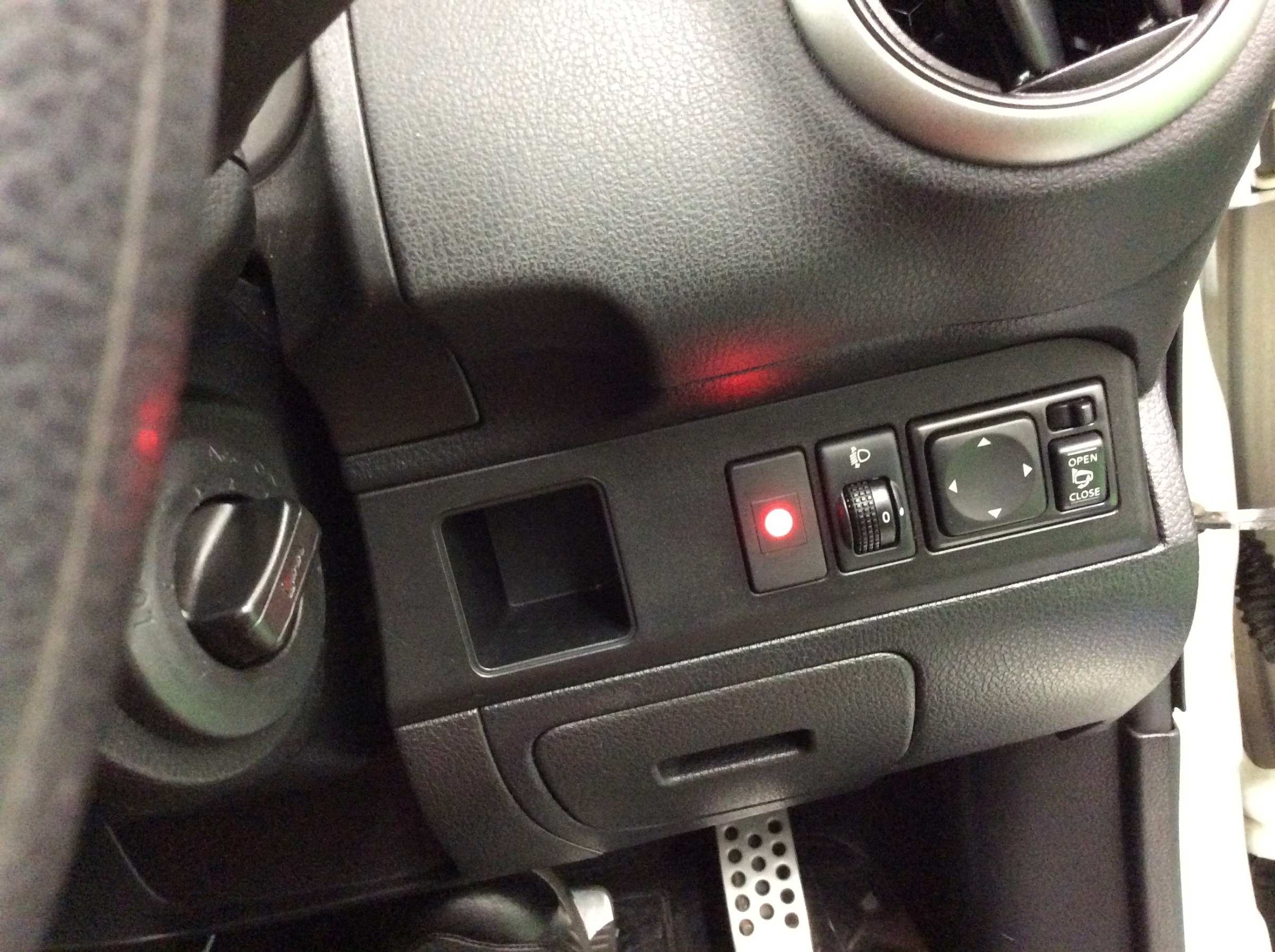 スイッチの見た目の違和感がないように純正のスイッチの空きスペースに