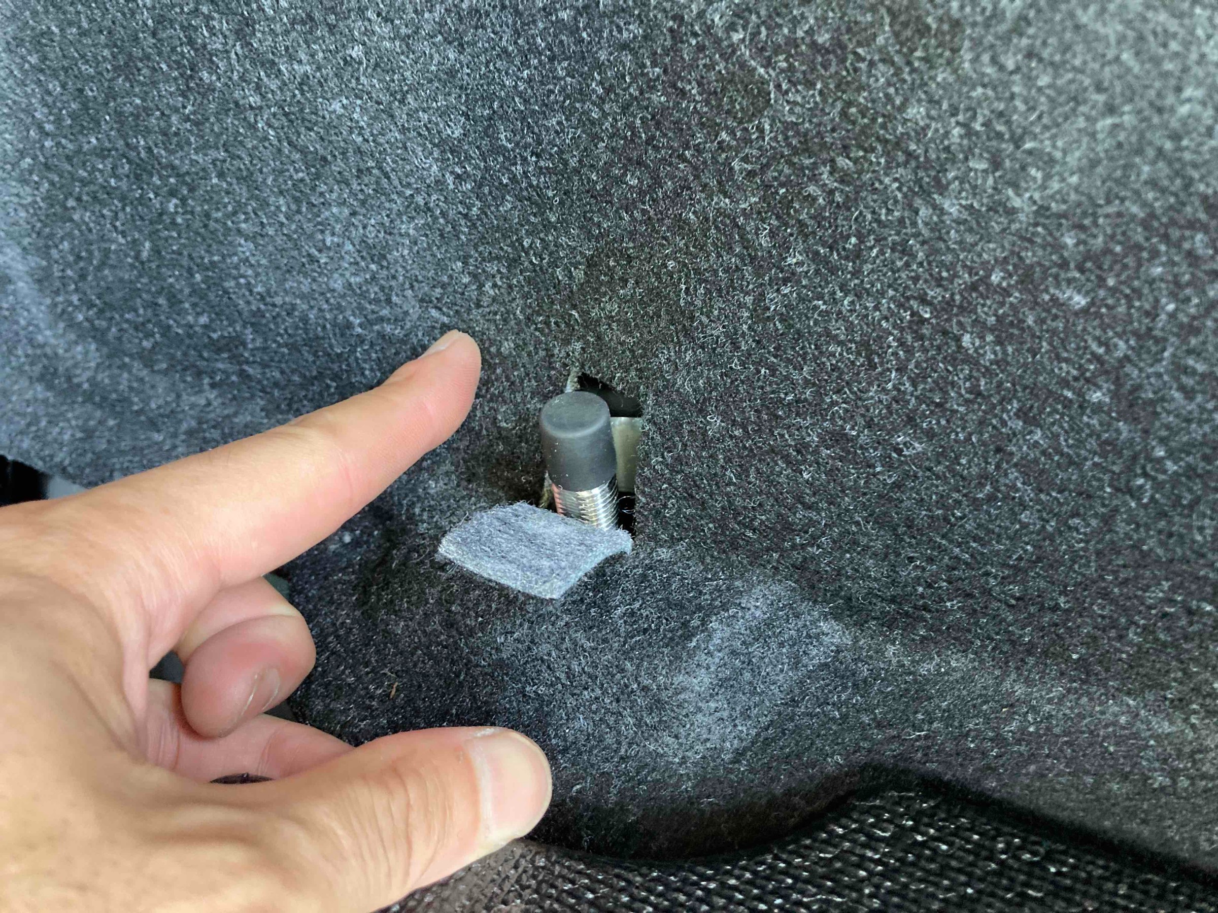 ショックアブソーバーのトップナットが内装に干渉するため、多少カットするだけでOK!