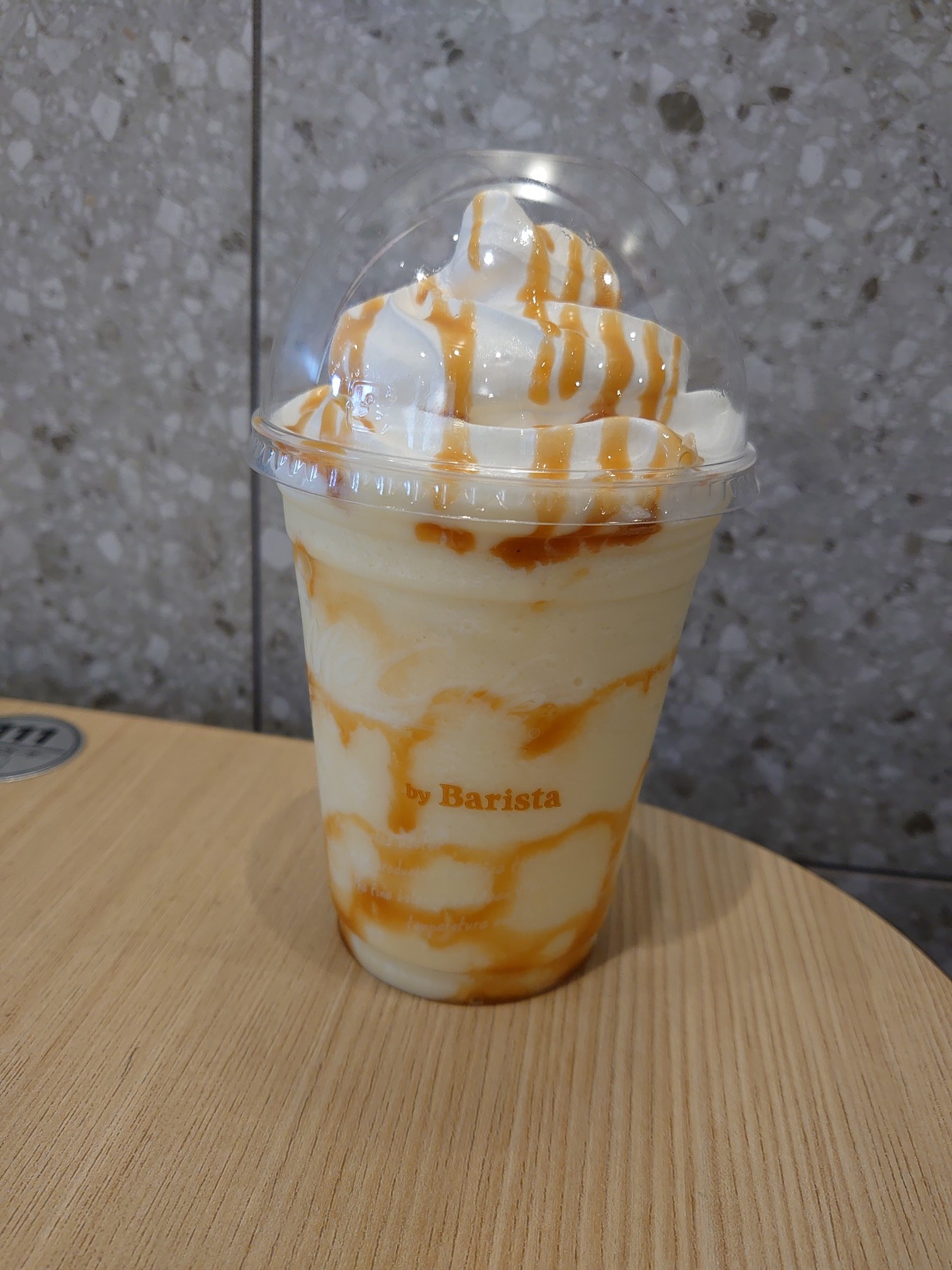 そんなわげで、代わりに近くのマックカフェに行き、期間限定の『バナナキャラメルフラッペ』を飲んで帰りました。