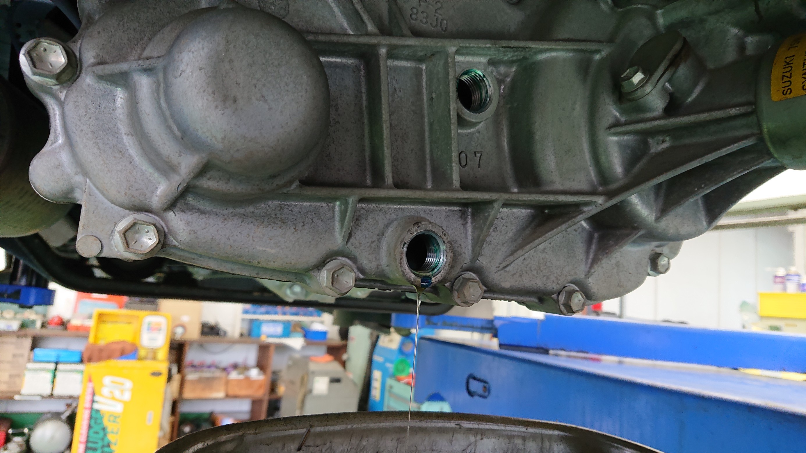 こちらの車両は4WDなので、ディファレンシャルとM/Tギヤオイルが