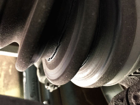 今すぐにトラブルが起きるわけではありませんが、ブーツが切れてしまっても走行中に気付く事はまず不可能。タイヤハウスの中や、ホイールの内側にグリスがドバーっと付着しているのに気付いて初めて分かる、という事が多いんです。