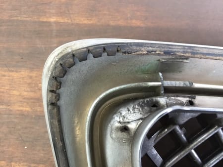 交換前のフロントグリルはネジで留まっておらずタイラップで留まっているだけでいつ取れても