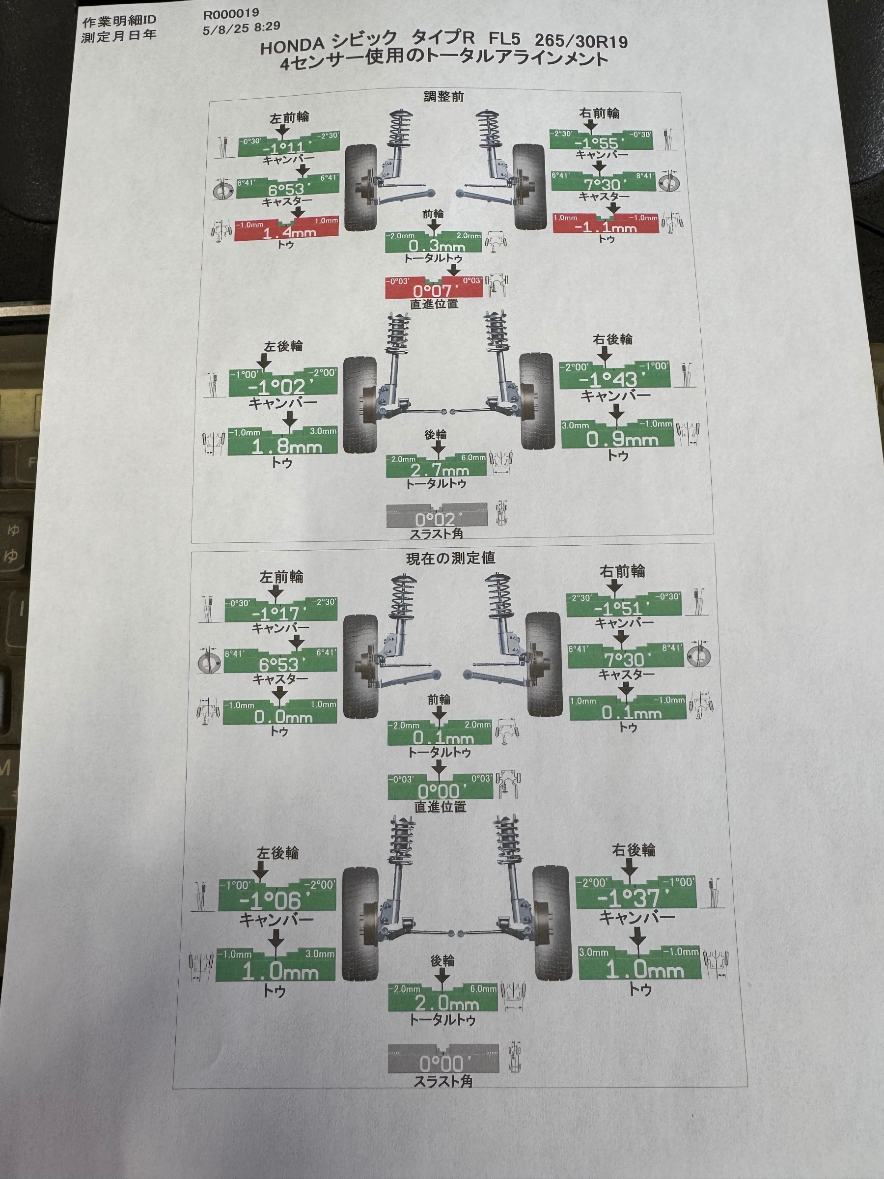 【 ホンダ シビックタイプR FL5 】 アライメント調整