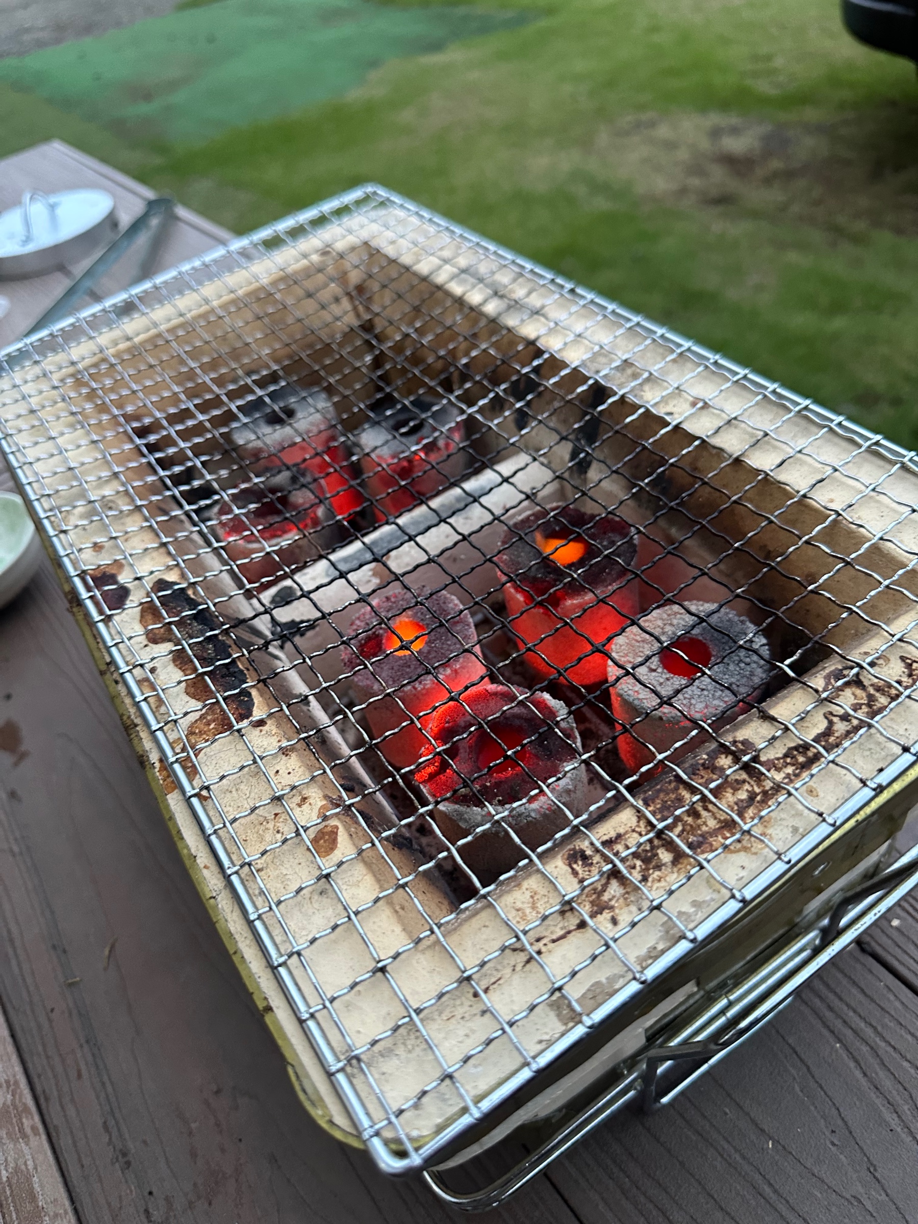 お酢を網にたっぷり塗り弱火でじっくり焼きました