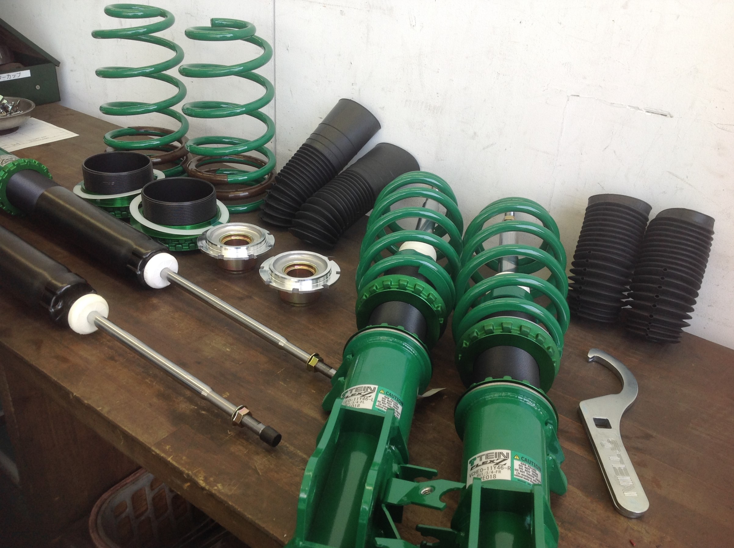 今回はローダウンをご希望とのことでしたので、当店人気のTEINの車高調で