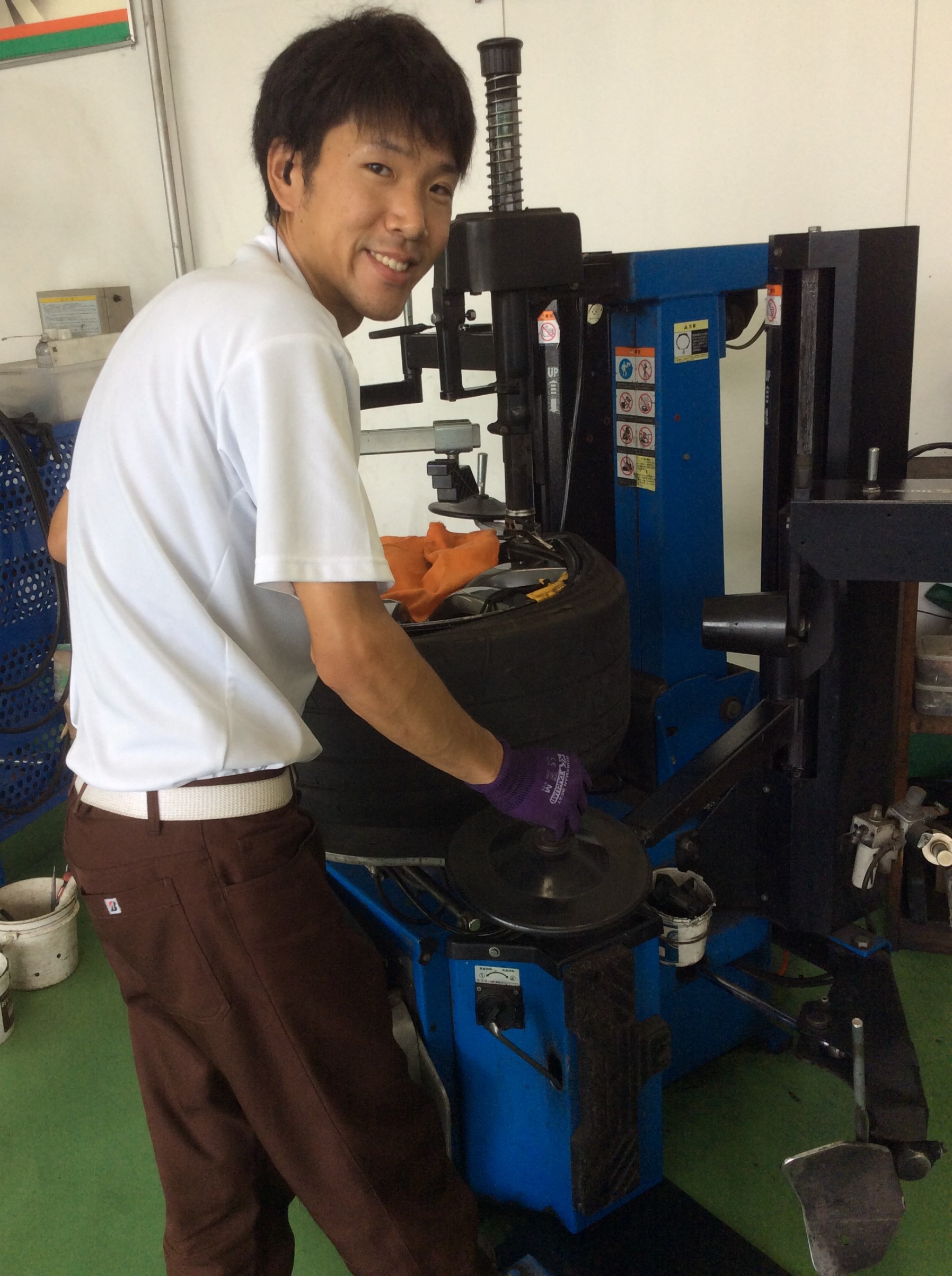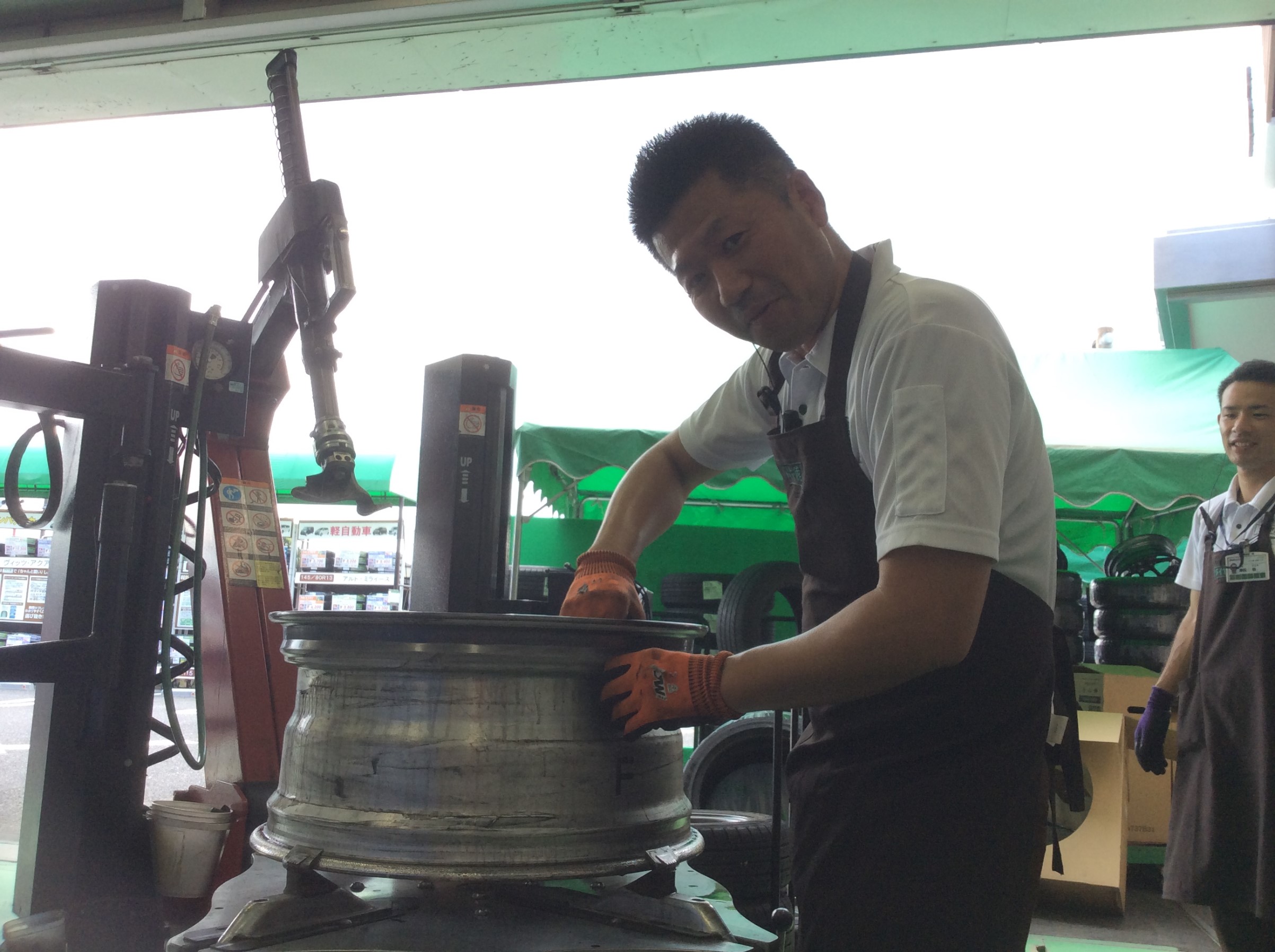 硬いタイヤですので、慎重に作業を進めます!