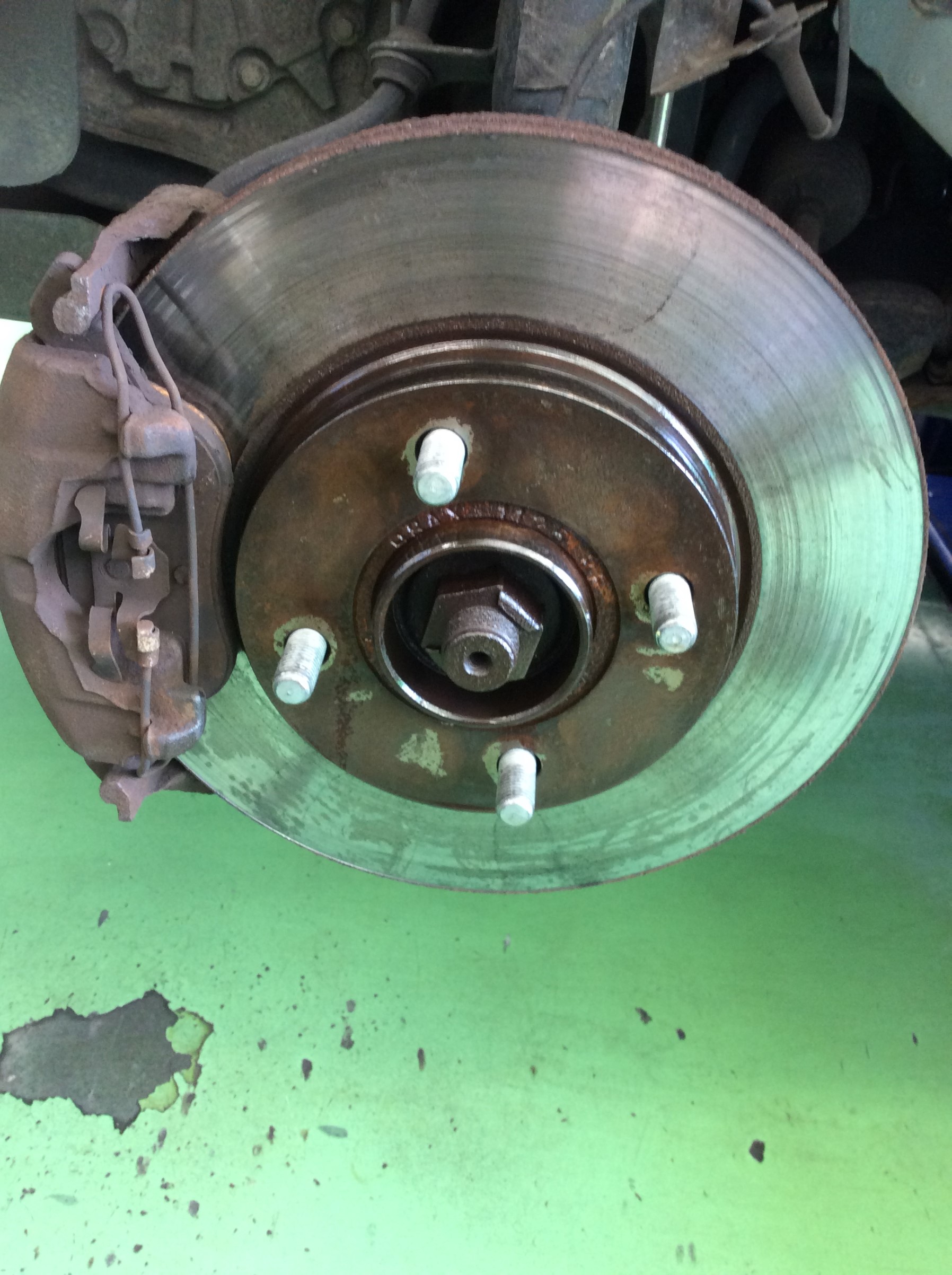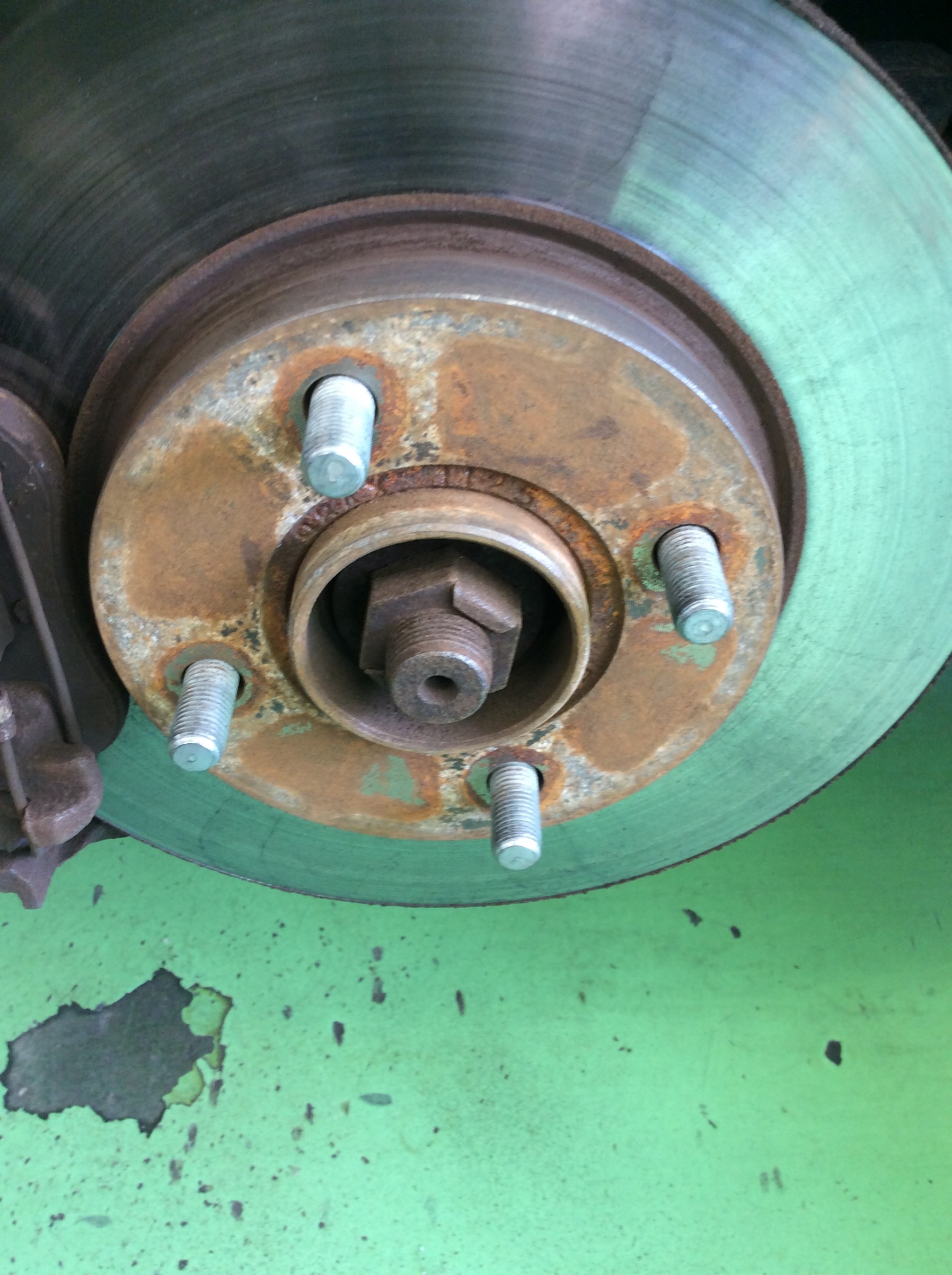 タイヤ交換作業でタイヤを外した際にハブ廻りの錆びが酷かったのでご案内したところ一緒に作業をしてほしいということで作業を実施いたしました。