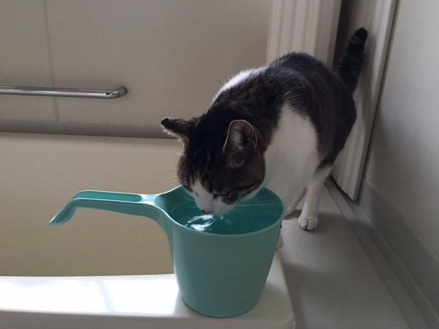 水分補給はもっぱらお風呂場に溜めてある桶からです(笑)同じようにお風呂の残り湯を飲むのが好きなペットは、猫に限らず犬なんかでも多いと聞きますが、不思議です。こうやって猫が水を飲んでいるときの舌の動きは何時間でも見ていられますね!(笑)
