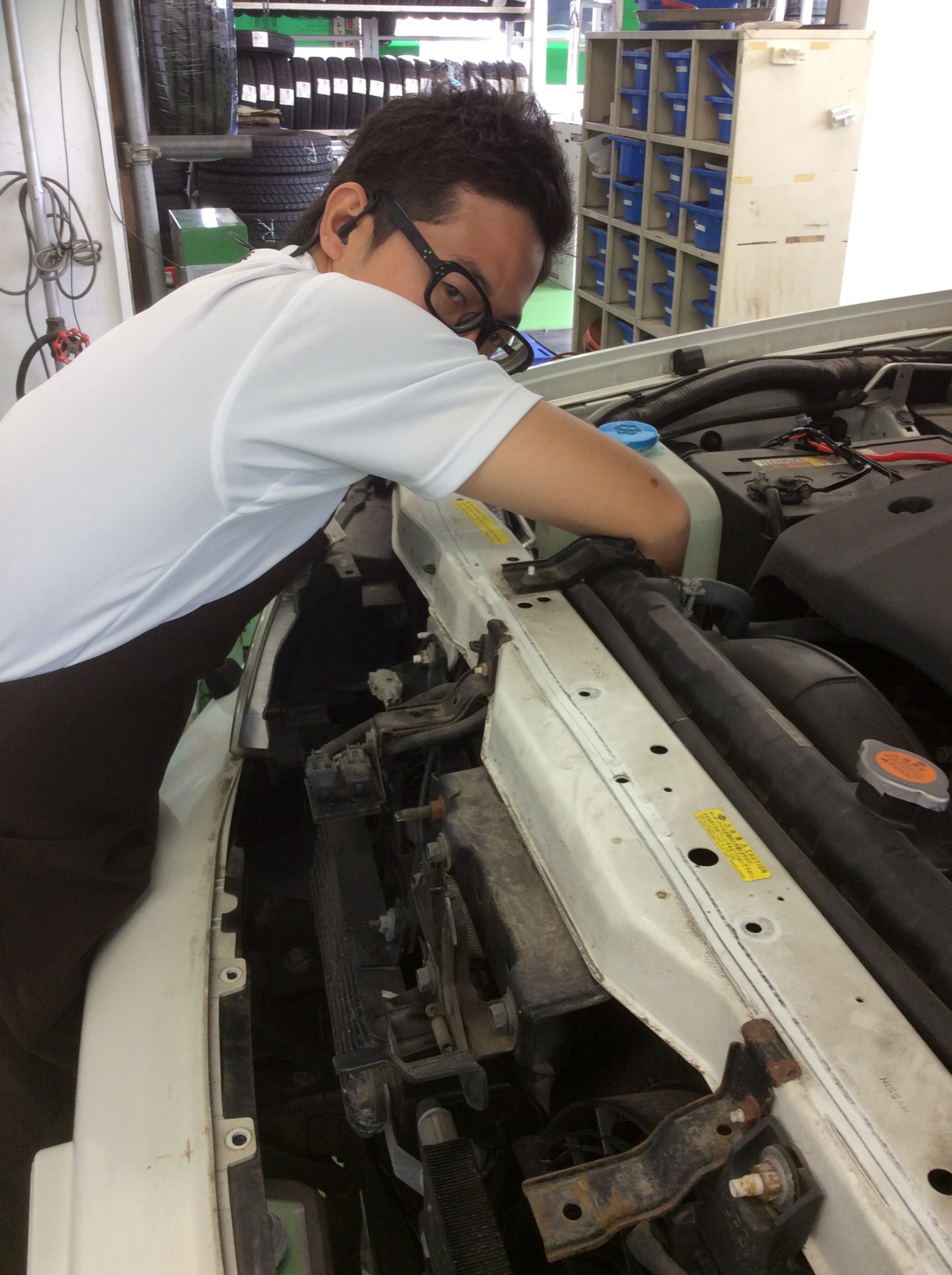 まずはヘッドライトバルブの交換を行っている石塚スタッフです。