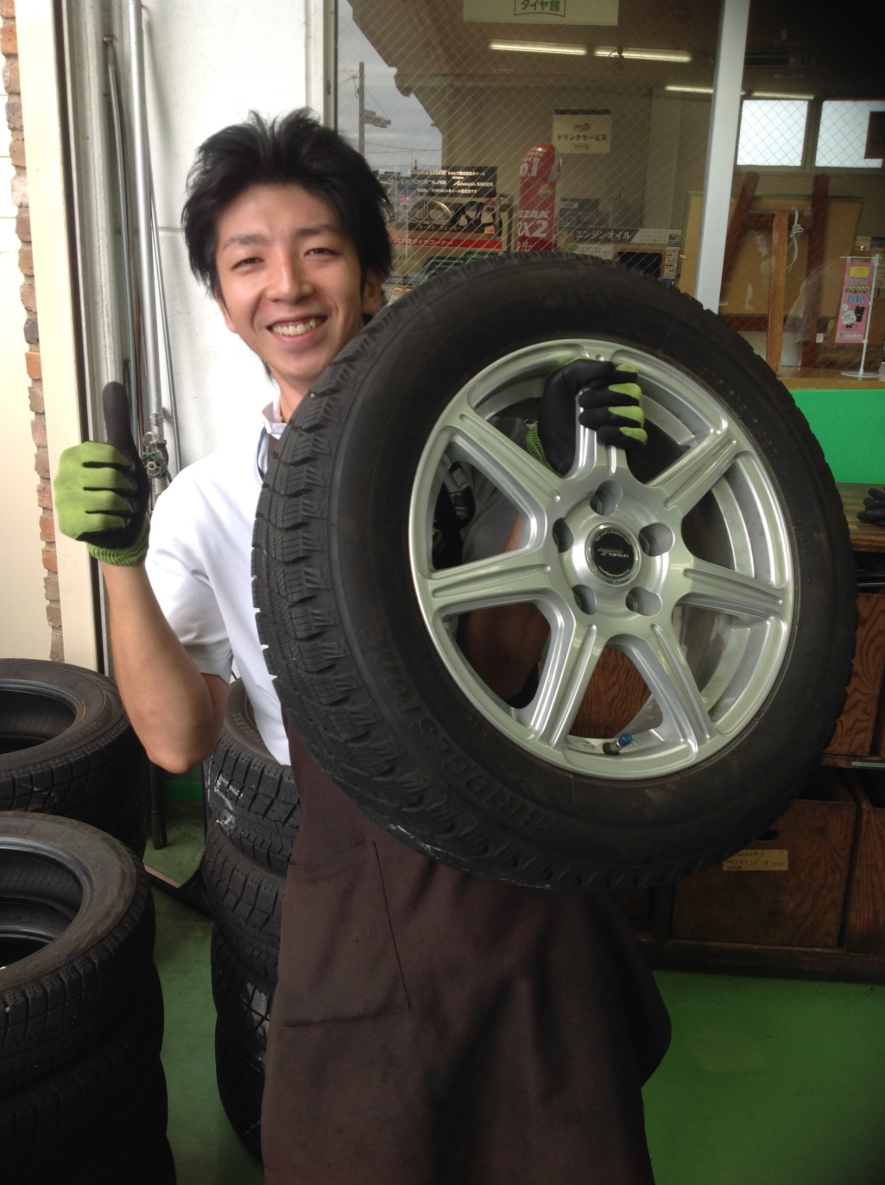 当店にはアルミホイールとセットしたお買得スタッドレスタイヤが置いてあります。
