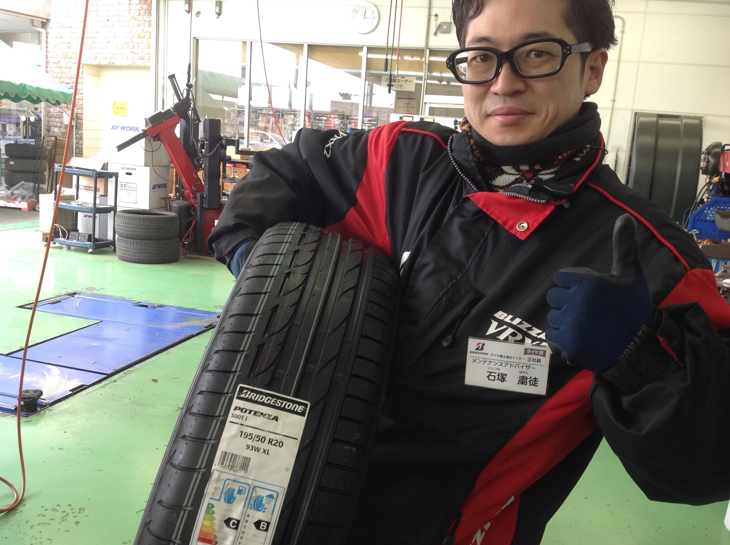 交換したタイヤはポテンザ S001 ⅰ というパターンでサイズは195/50R20と