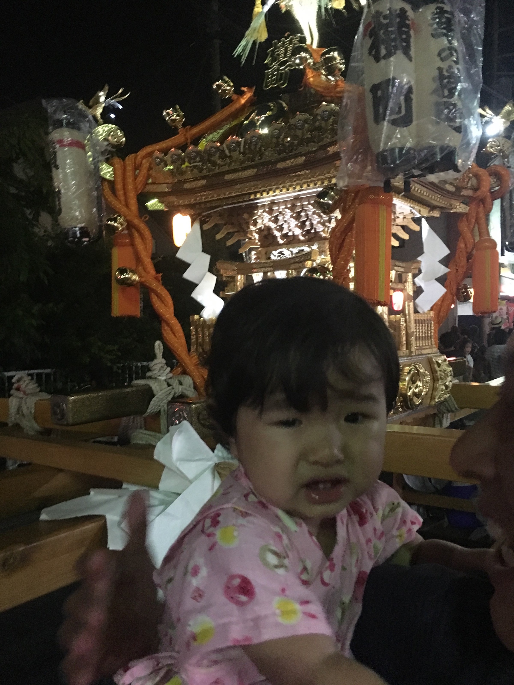 初めてのお神輿の勢いにお姉ちゃんのあゆちゃんギャン泣きでした(笑)