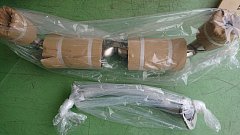 こんにちは! 先日ご予約いただいた「マフラー」が入荷してきました! メーカー欠品中のため1か月ほどお待ちいただく形になりました。 このマフラーの形状で車種が分かる方は相当のマフラー通!です。 そして、付属品を確認していたら マフラーの出口に取り付けるのかな?それにしても1枚足りない・...