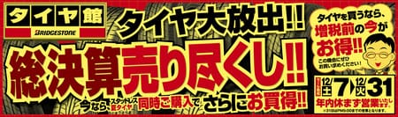 さてさて、タイヤ館では12月7日(土)より今年最後の大セール