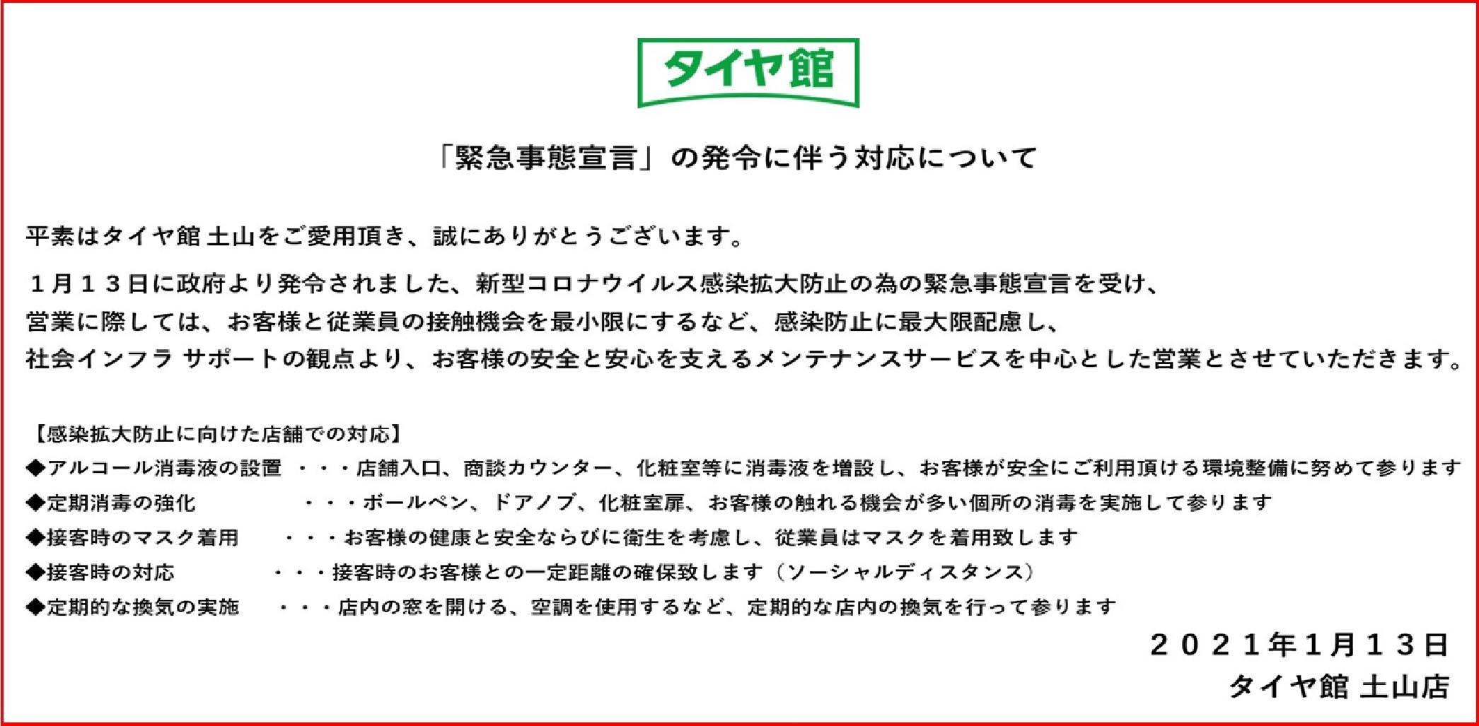 平素はタイヤ館 土山をご愛用頂き、誠にありがとうございます。