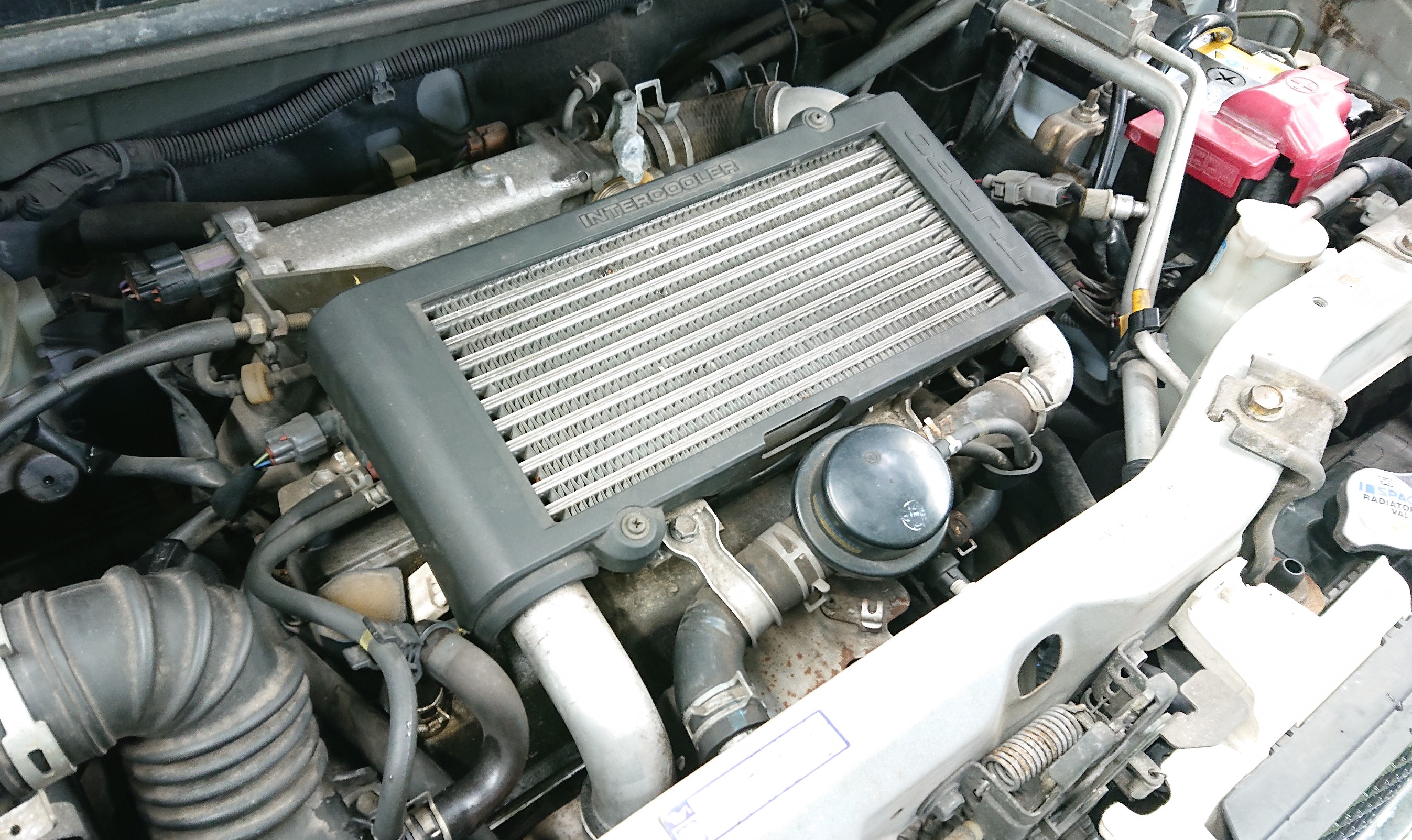 純正インタークーラーを取り外し、イグニッションコイルのカプラーを外してから・・・