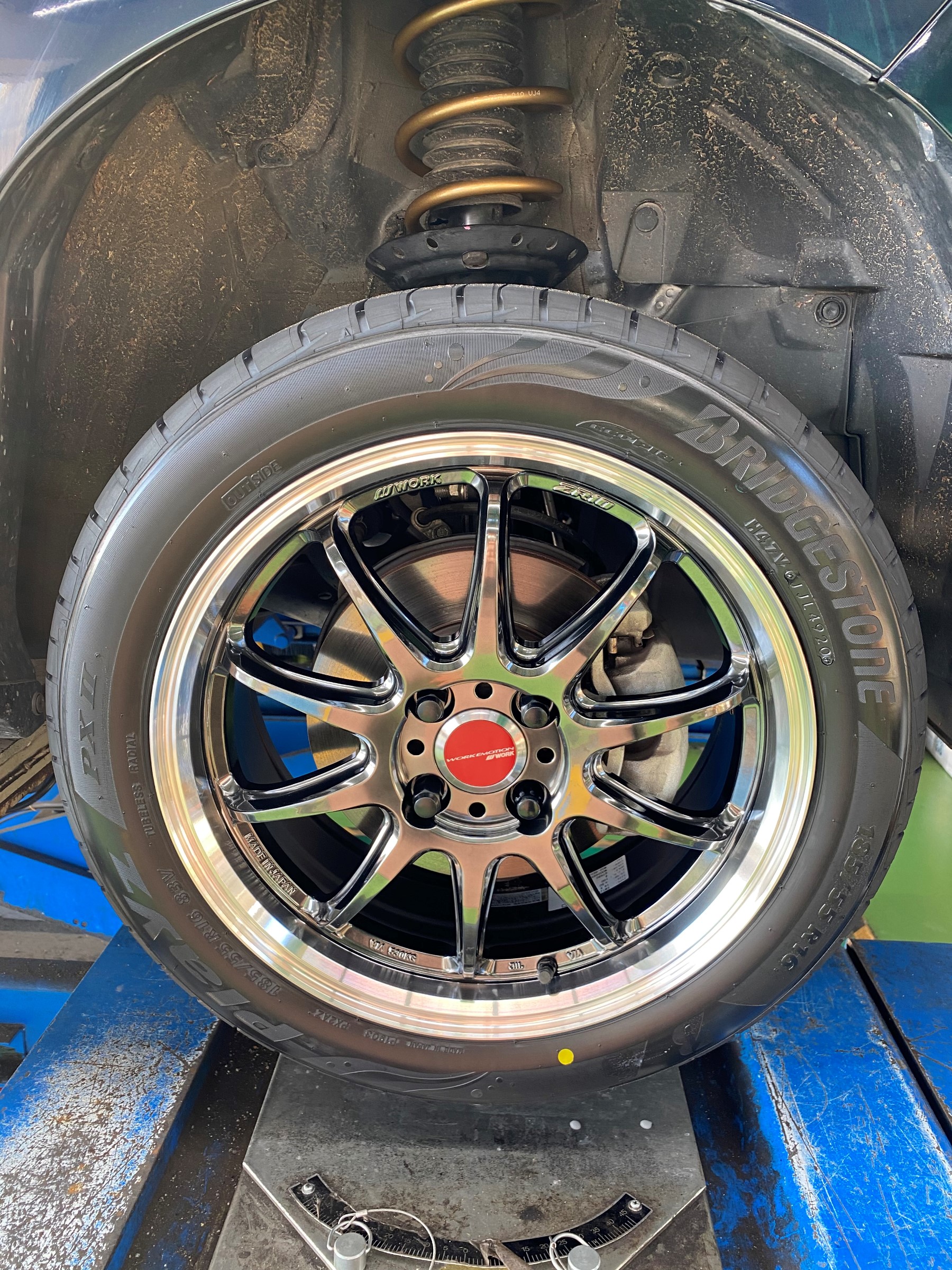 本日は前回、ダウンサスを装着したFIT RSに『ホイールセット』装着です♪