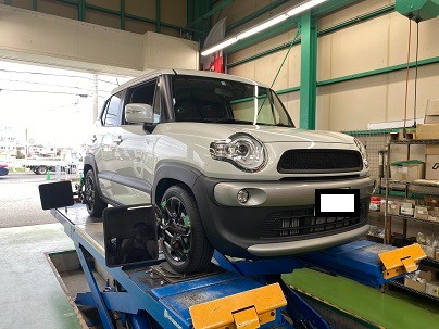 サスペンション交換後のスズキクロスビー【MN71S】のアライメント調整を実施しました。