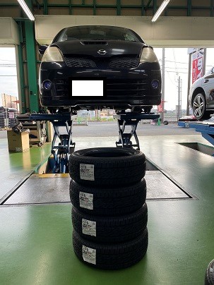 本日は、日産モコのタイヤタイヤ交換を実施しました。