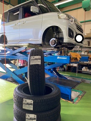 本日は、スズキ・スペーシアカスタムのタイヤ交換を実施しました。