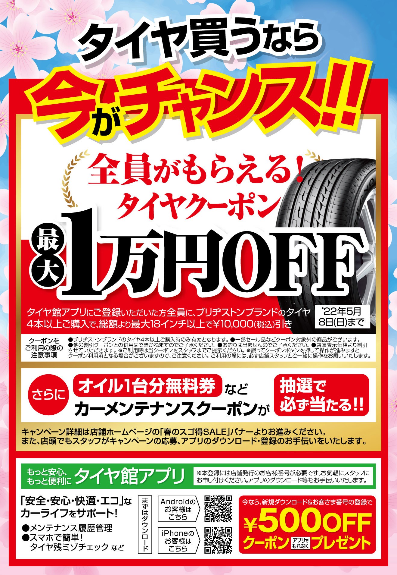 5月8日(日曜)まで『最大 10,000円OFF タイヤクーポン』プレゼント中です!