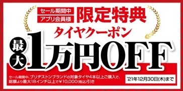 ☆ご好評につき、期間延長で12月30日(木曜)まで使用可能です!『最大 10000円OFF タイヤクーポン』☆ ポスト 2021年12月25日 いつも、タイヤ館 土山をご利用いただき、またホームページをご覧いただき、本当にありがとうございます。 ご好評につき、期間延長で12月30日(木曜)まで使える『最大 10000円OFF タイヤクーポン』プレゼント中です! 決算SALE開催期間中、ブリヂストンブランドの対象タイヤ4本以上ご購入で総額より『最大 10000円引き タイヤクーポン』プレゼント中です タイヤ交換をご検討中の方は、是非タイヤ館 土山にお任せ下さいませ! カテゴリ:お知らせ