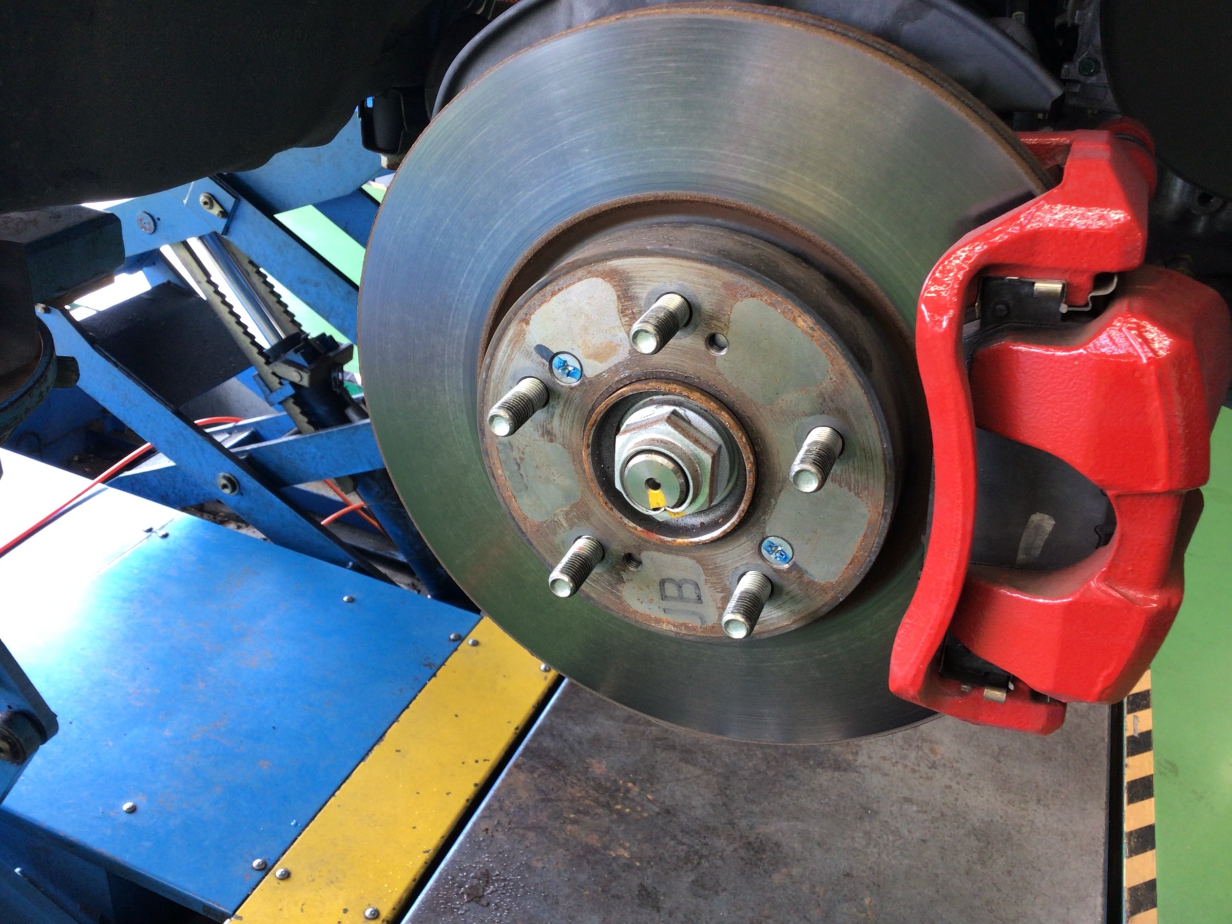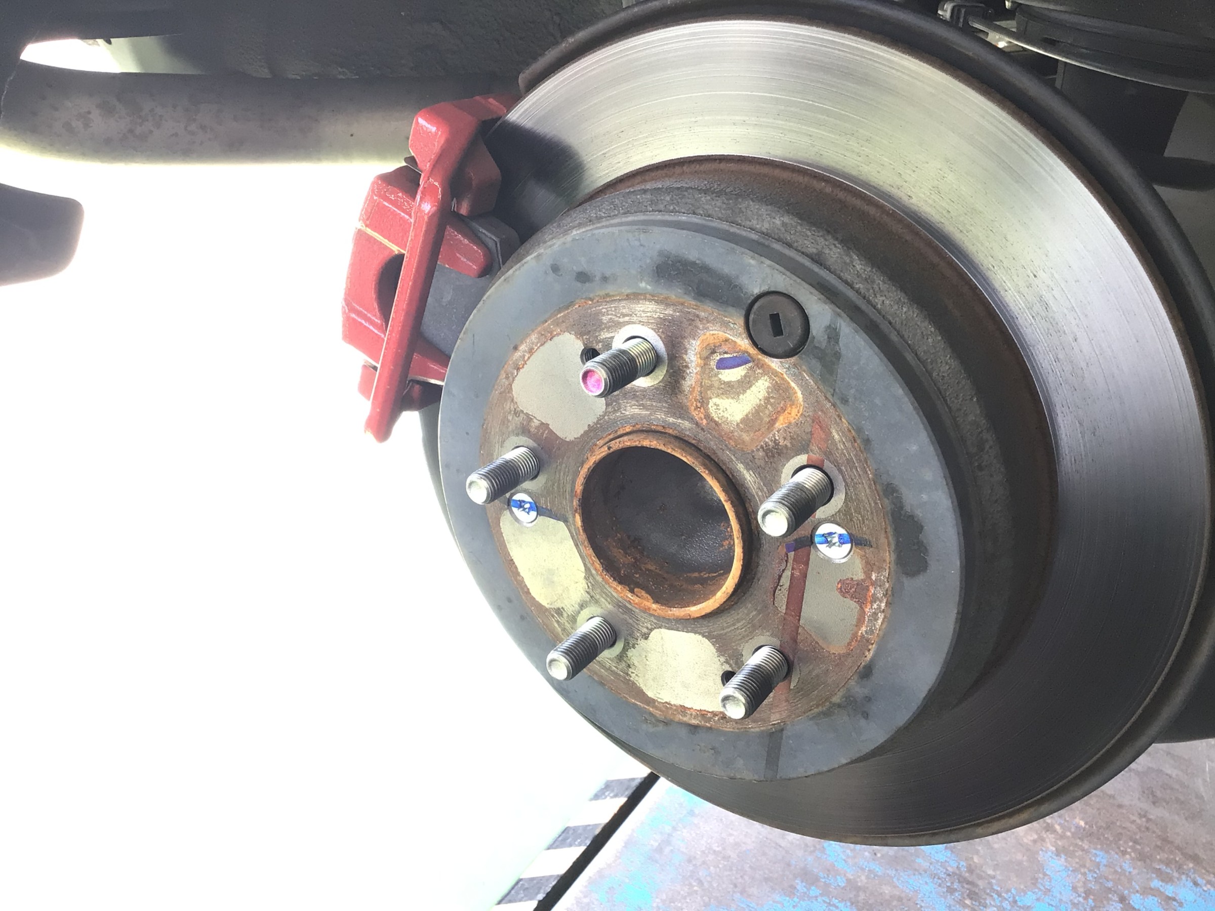 純正ホイールを外すとハブ回りが錆びており折角、新品を装着しますので