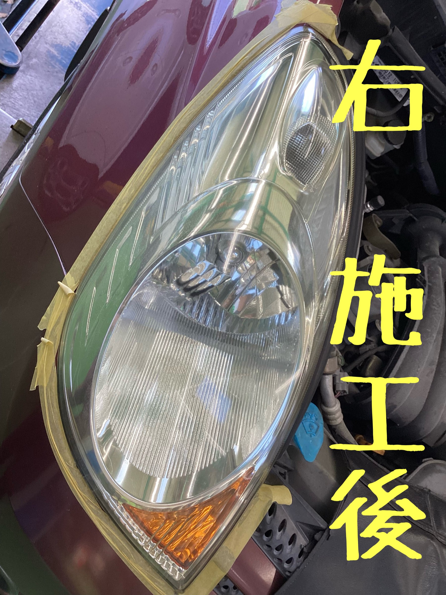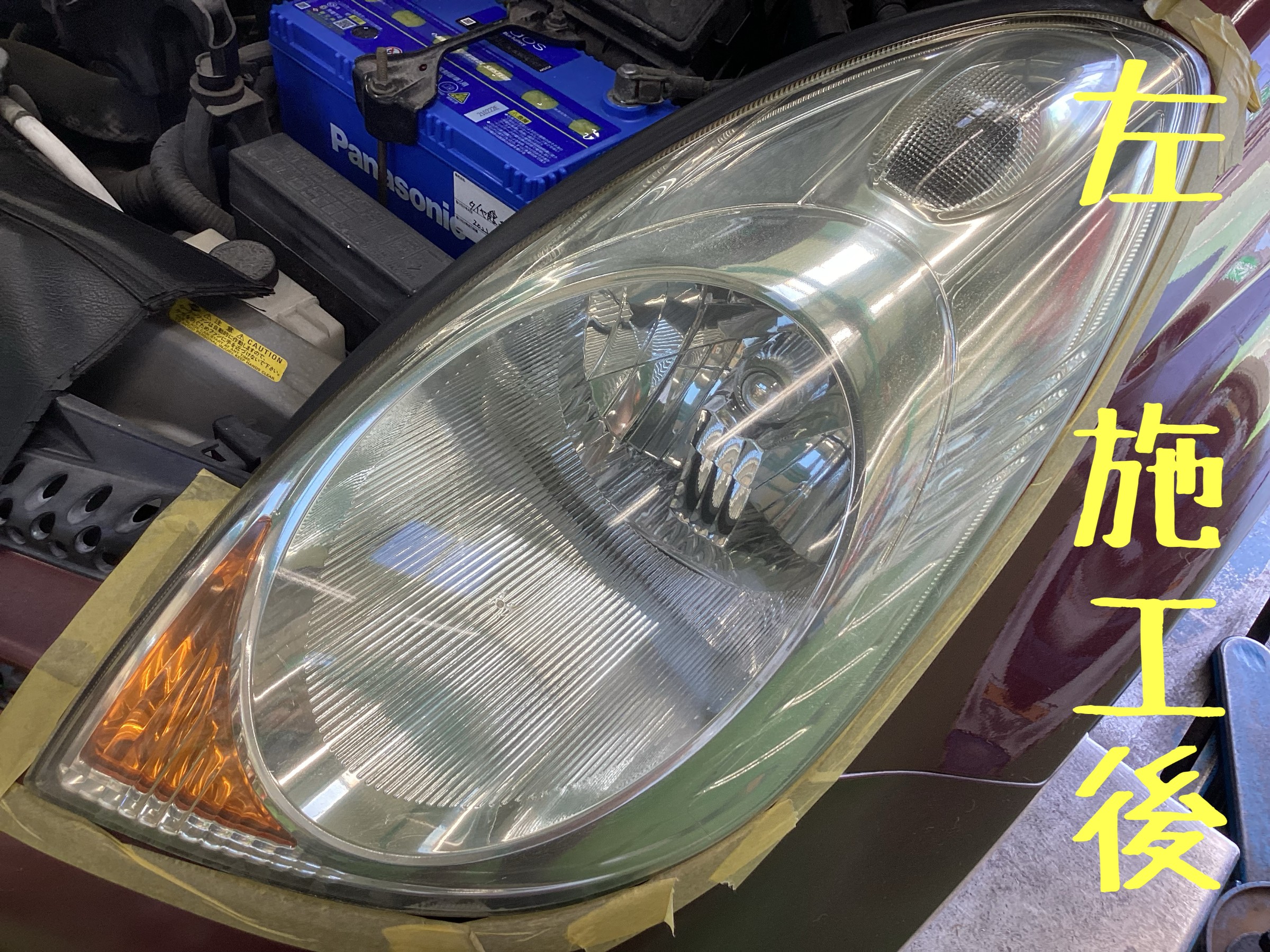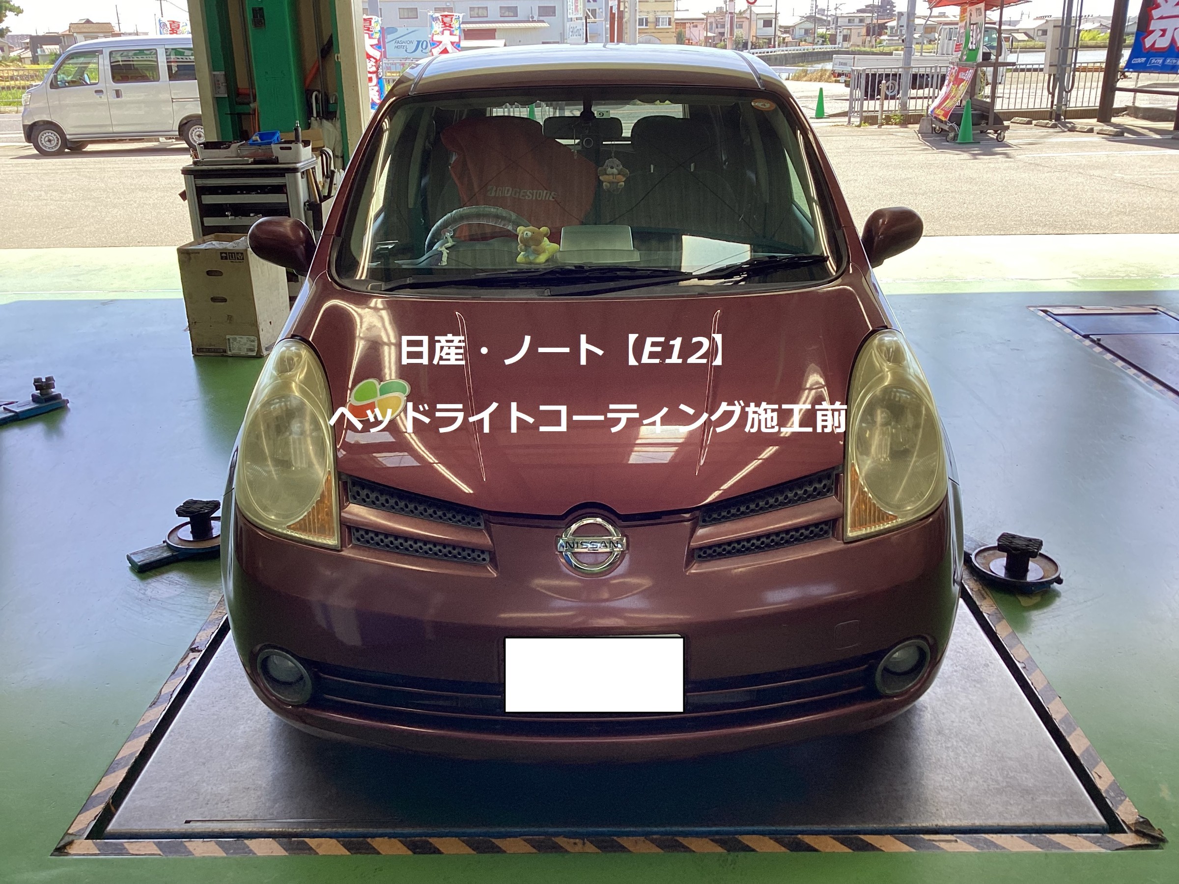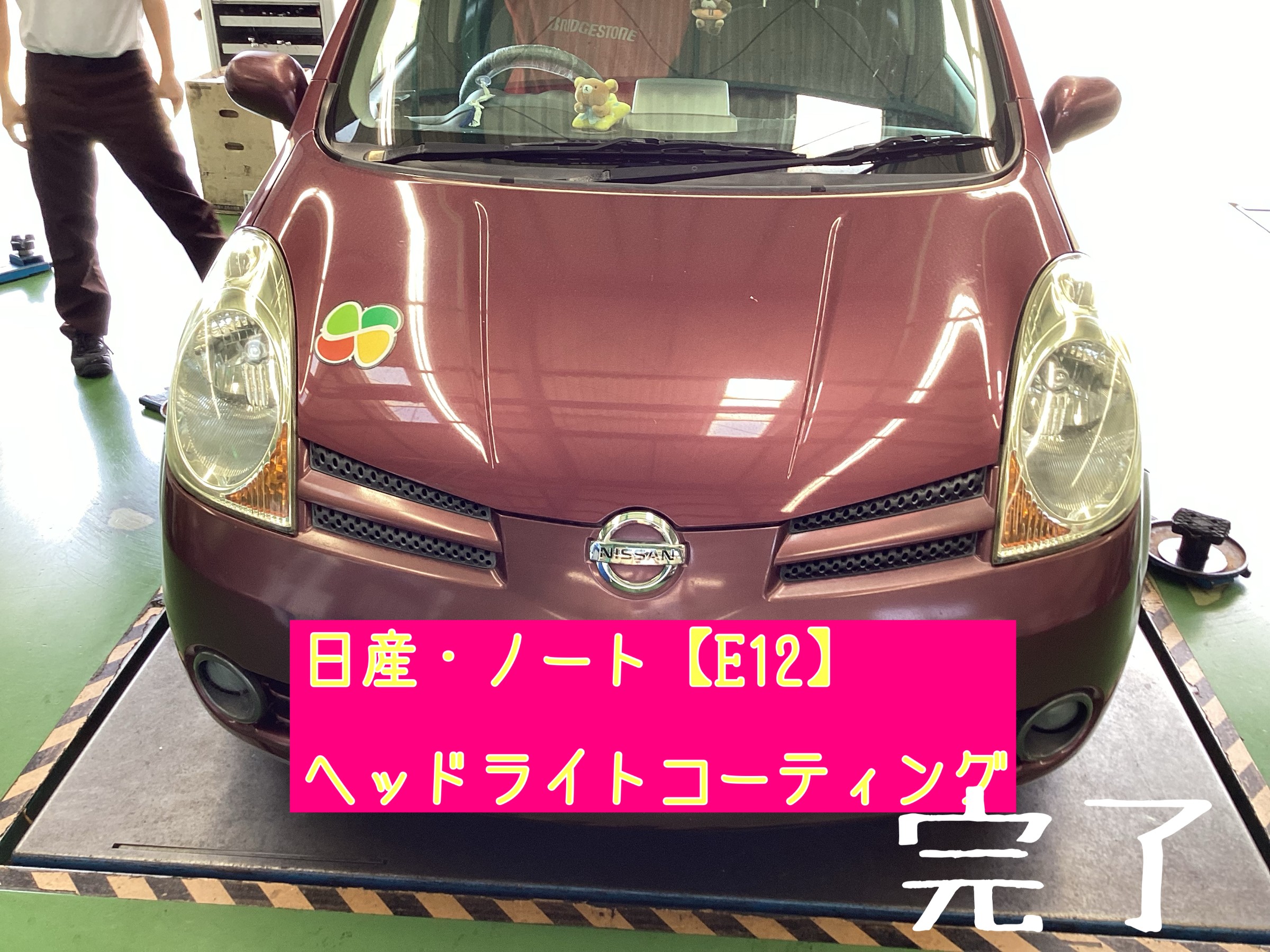 本日は、日産・ノート【E12】のヘッドライトコーティングを実施しました。