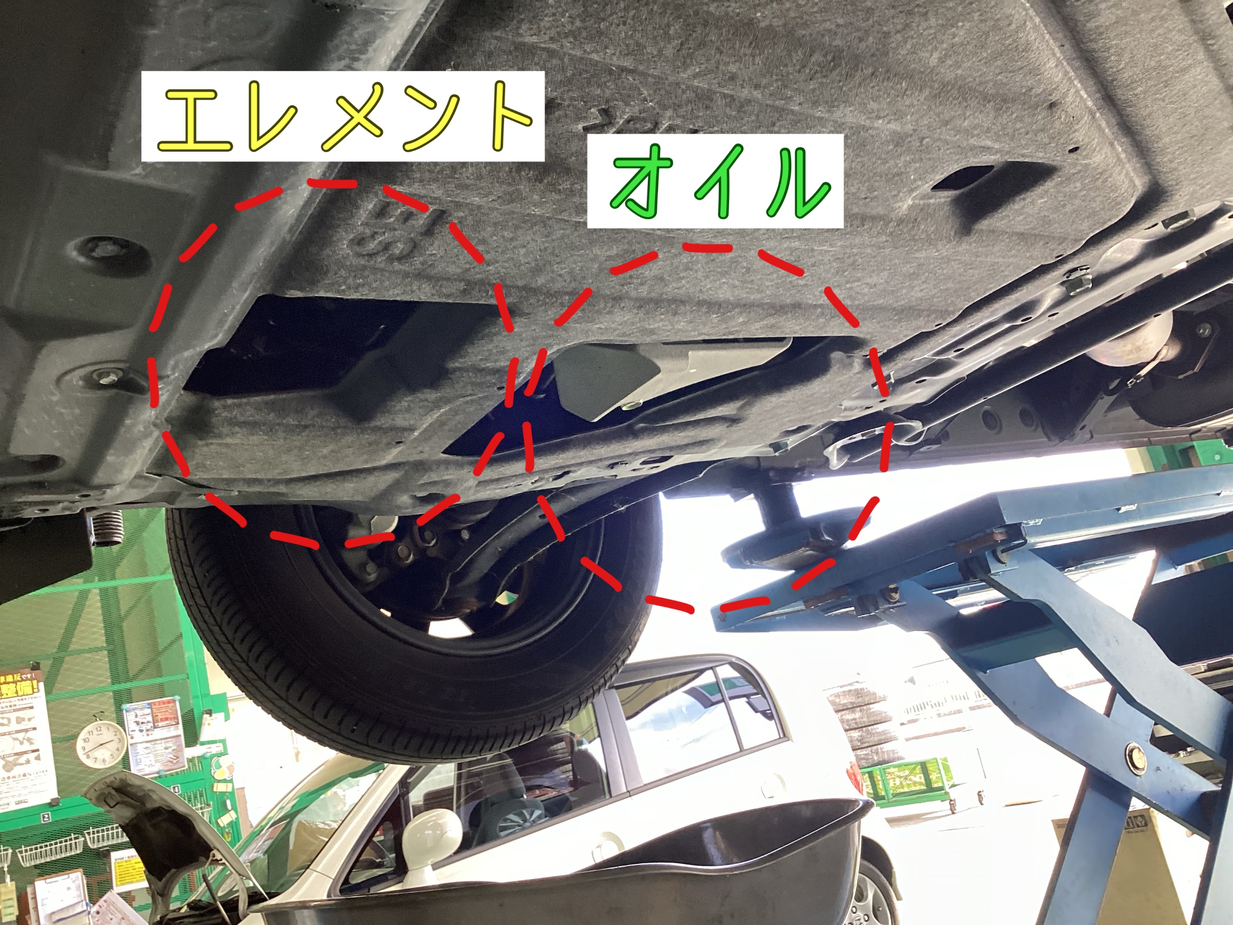 お車を上げてオイルとエレメント