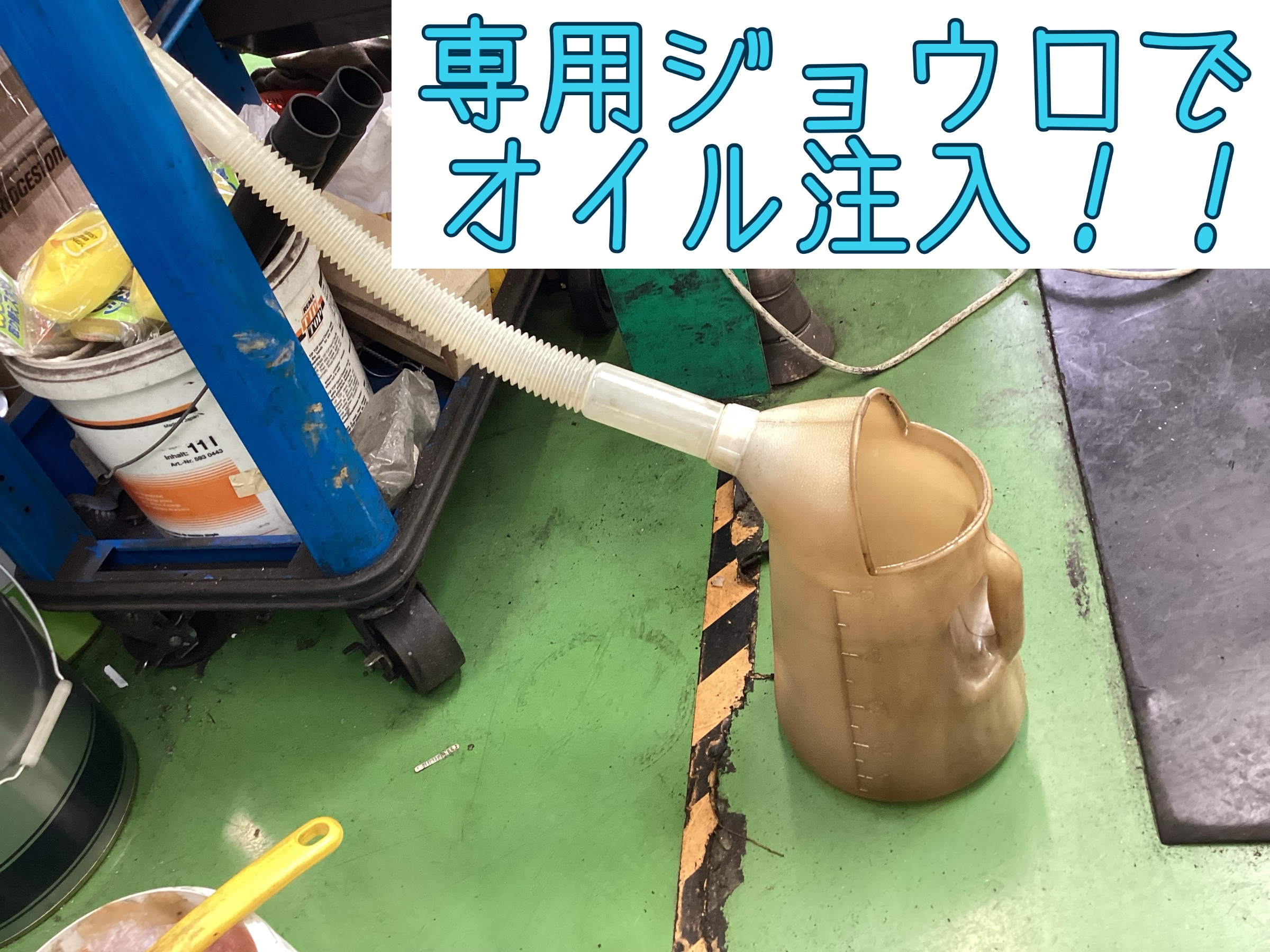 お車を下ろして専用ジョウロでオイルを注入したら……