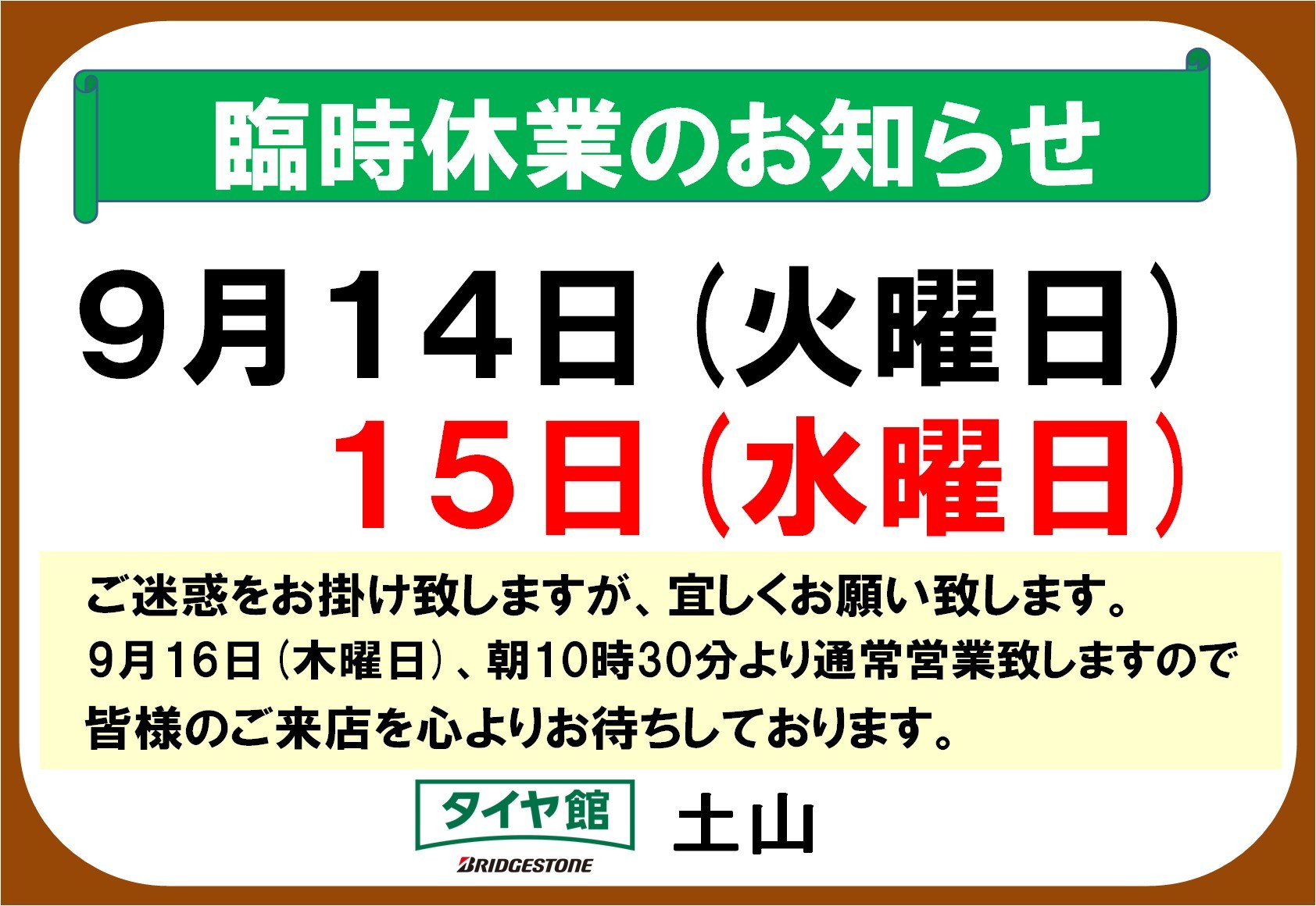 ★「ご注意下さい! 9月13日(火曜日)・14日(水曜日)は店舗休業日です」★