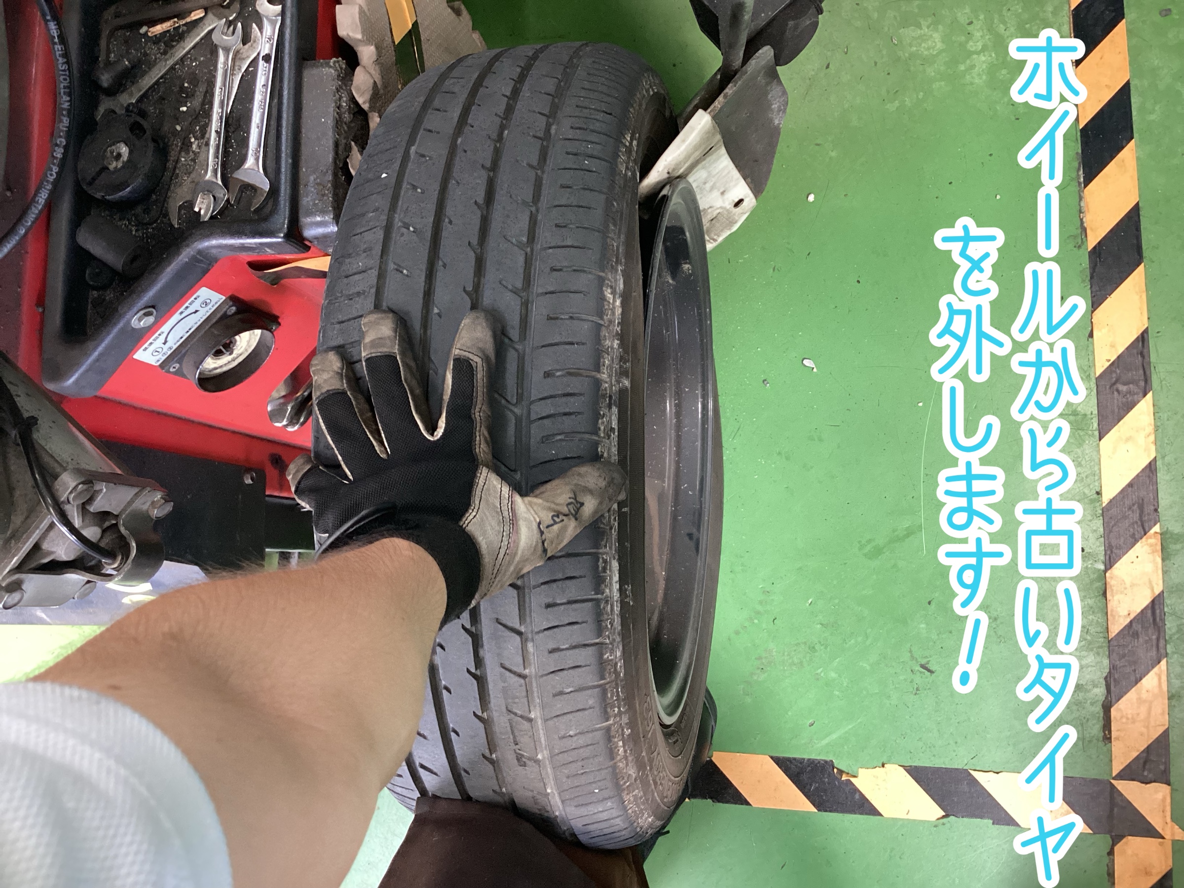 古いタイヤをホイールから取り外して!