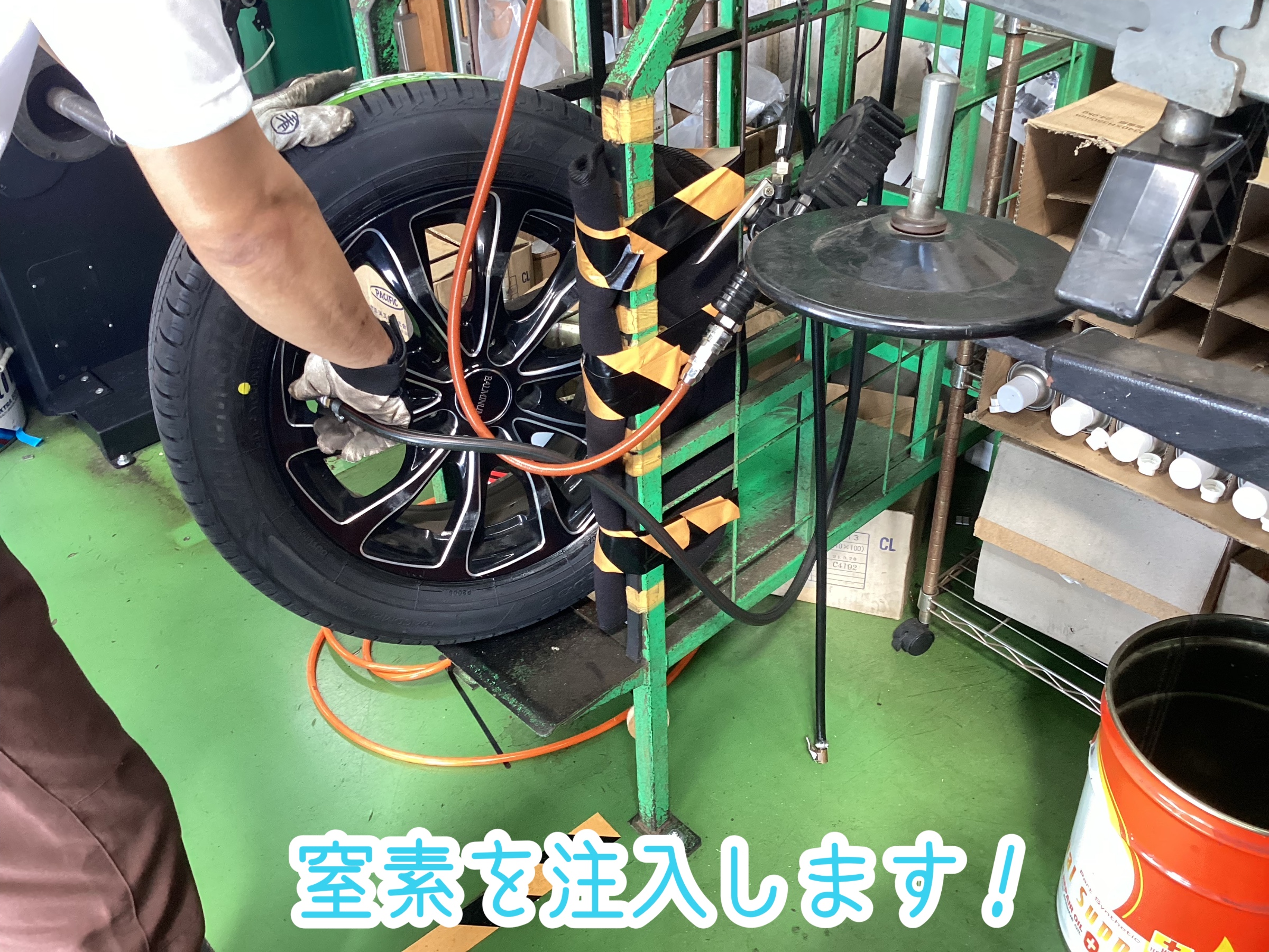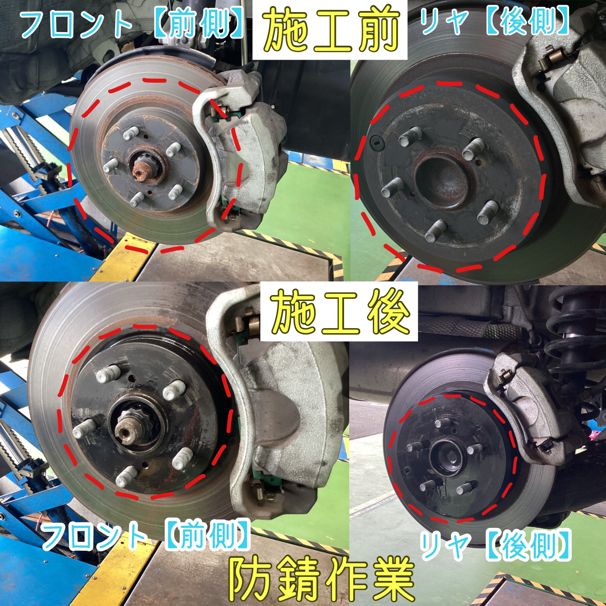 『タイヤ交換、防錆施工』