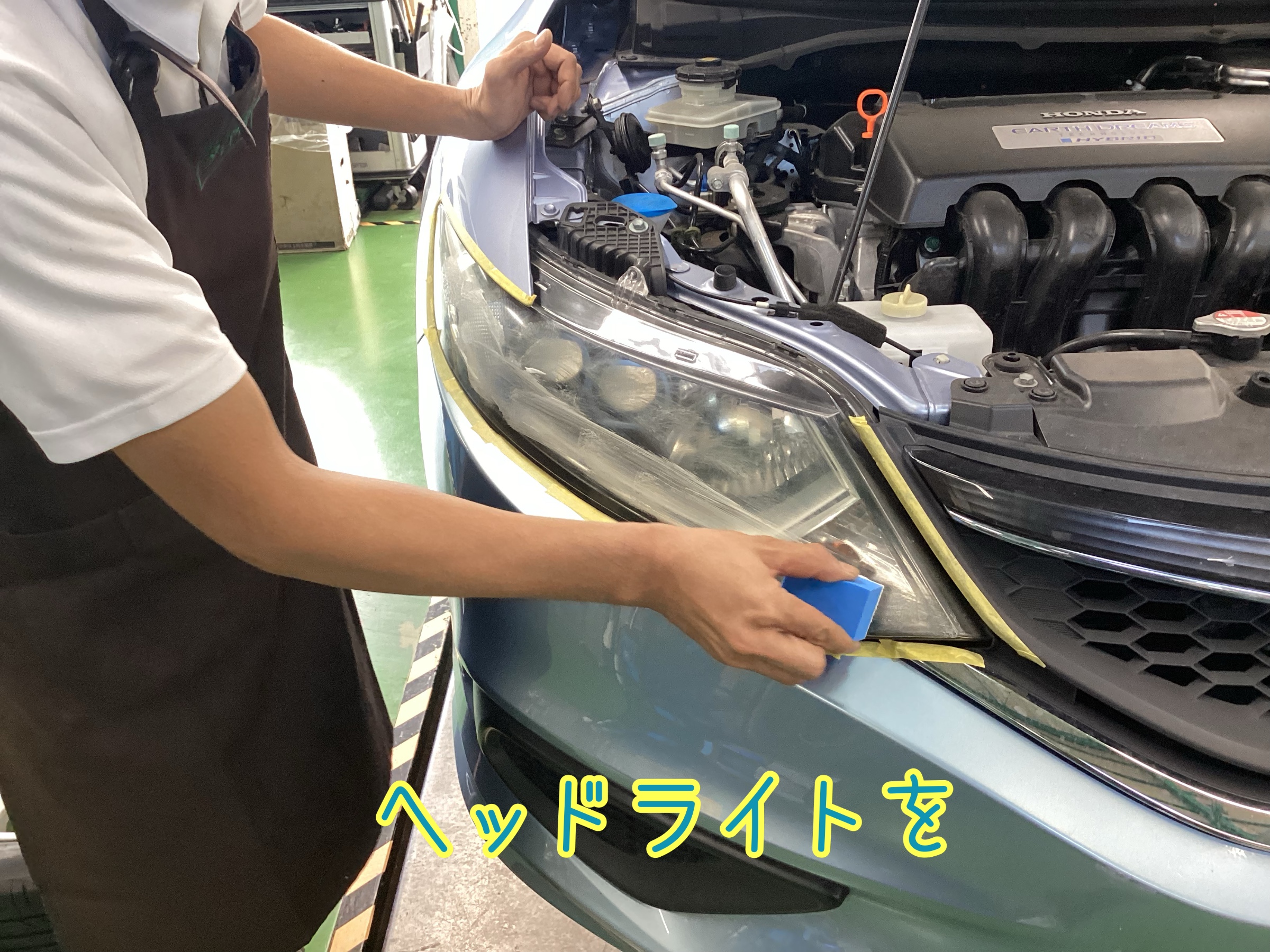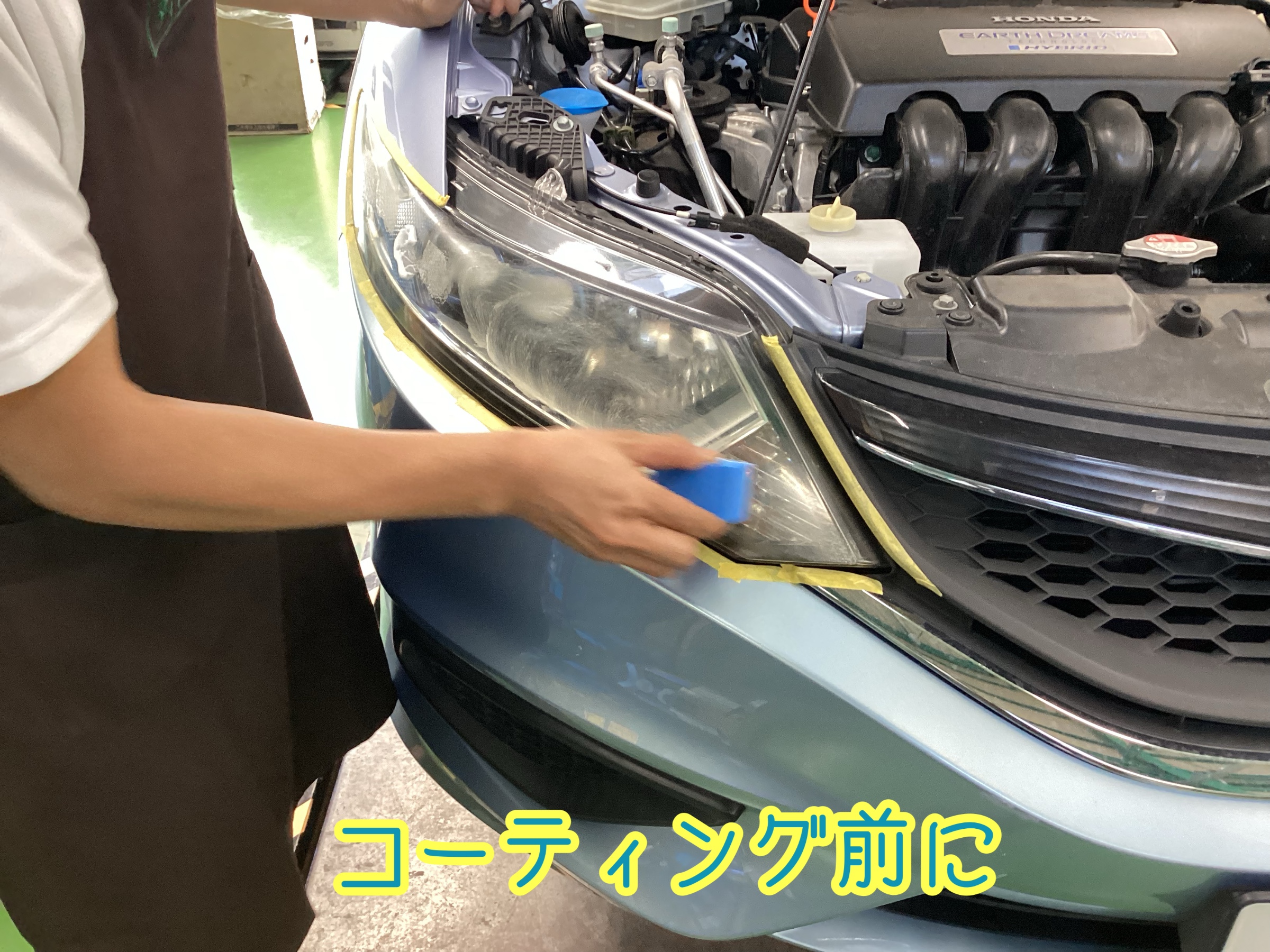ヘッドライトのコーティング前に