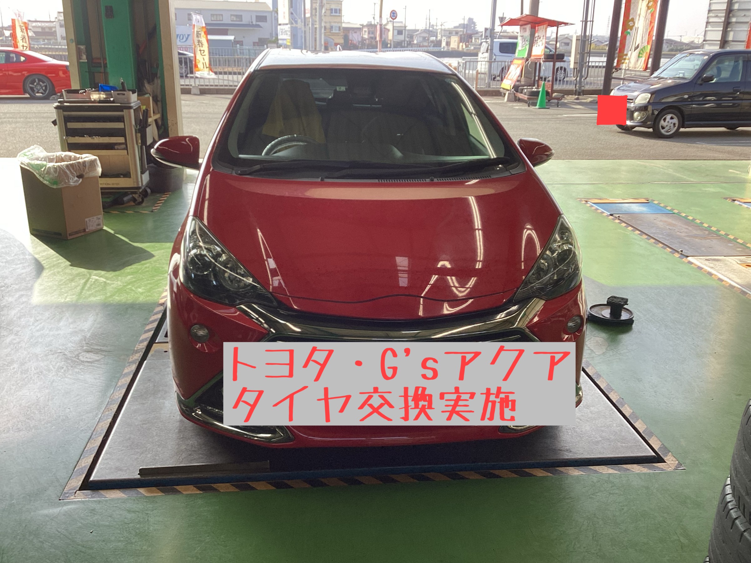 本日は、トヨタ・G‘sアクアのタイヤ交換を実施しました!