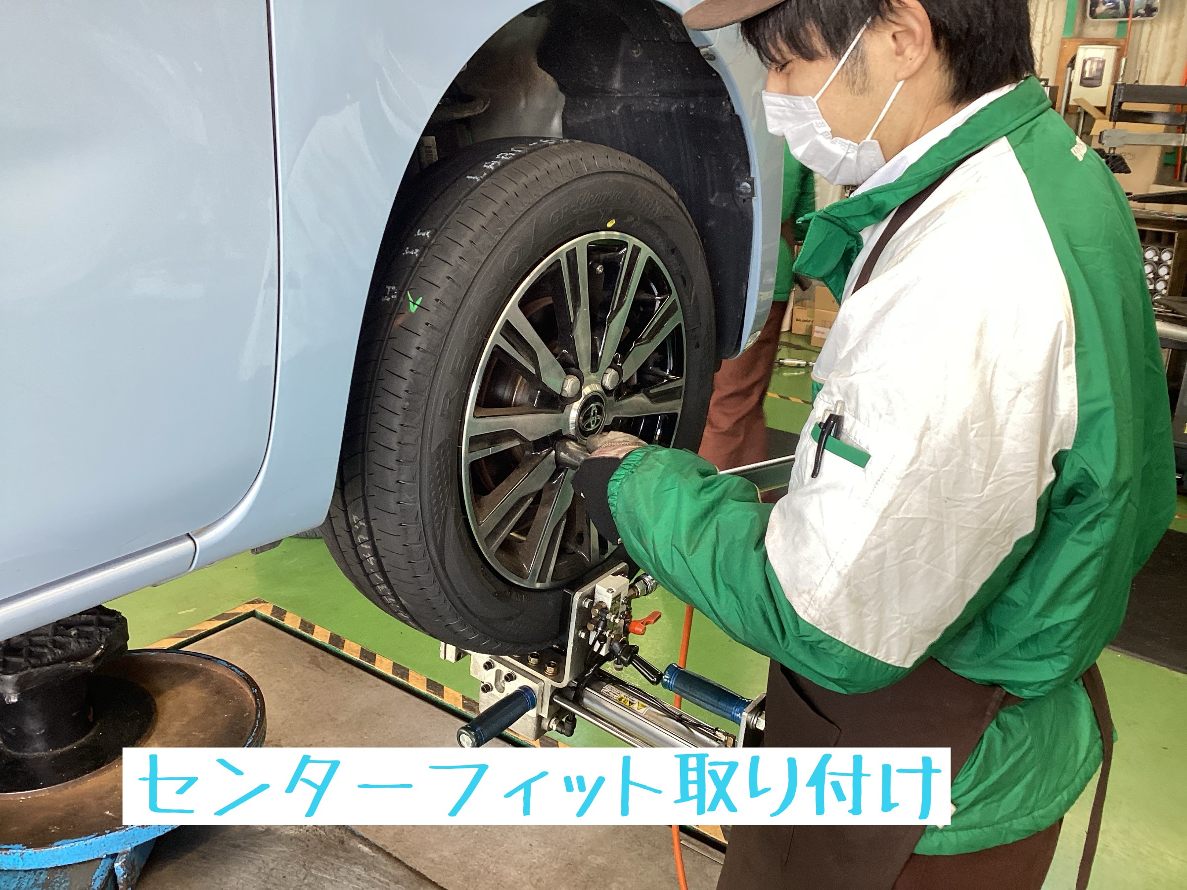 当店の拘り取付『センターフィット』取付でひとつひとつ丁寧にボルトの増し締めです^m^