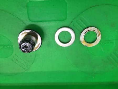 左が使用後、右が新品です。となりのねじがドレンボルトといい、