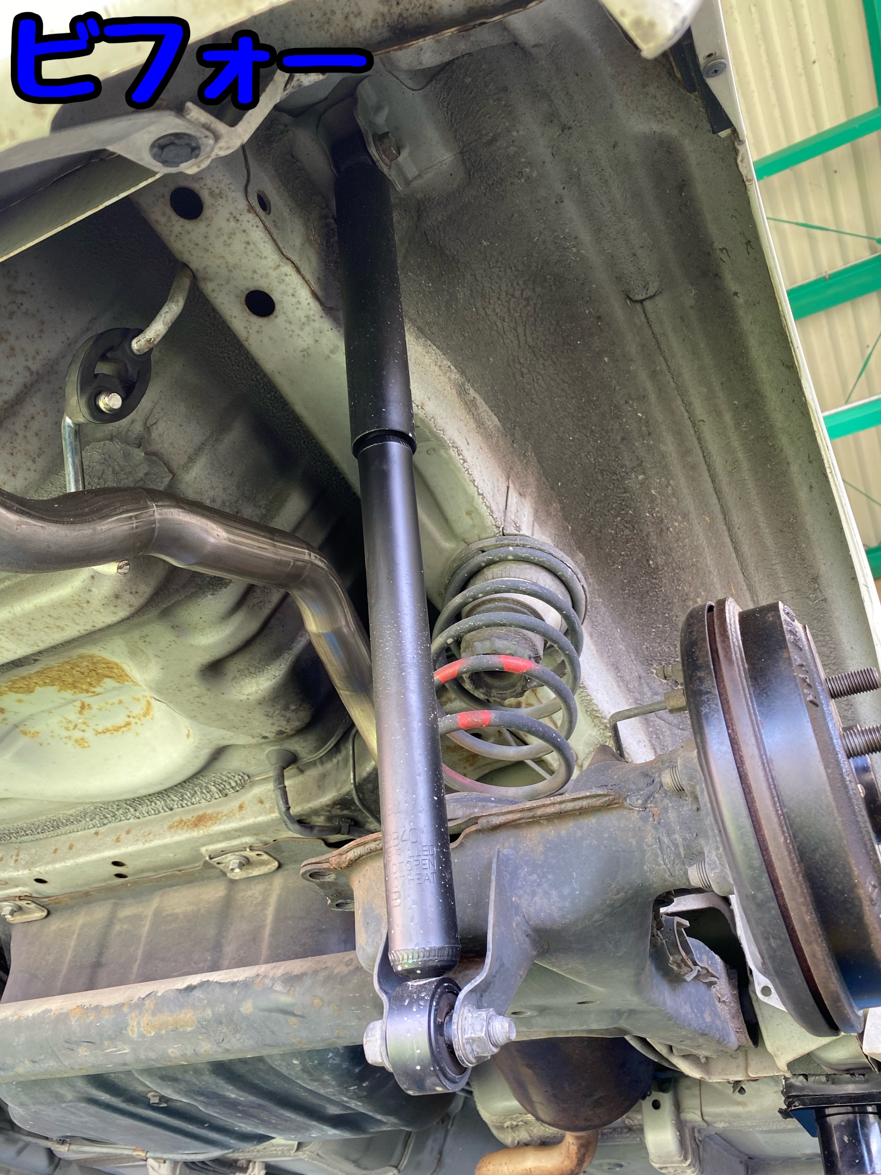取り外した純正の足廻り、リアショックに関しては