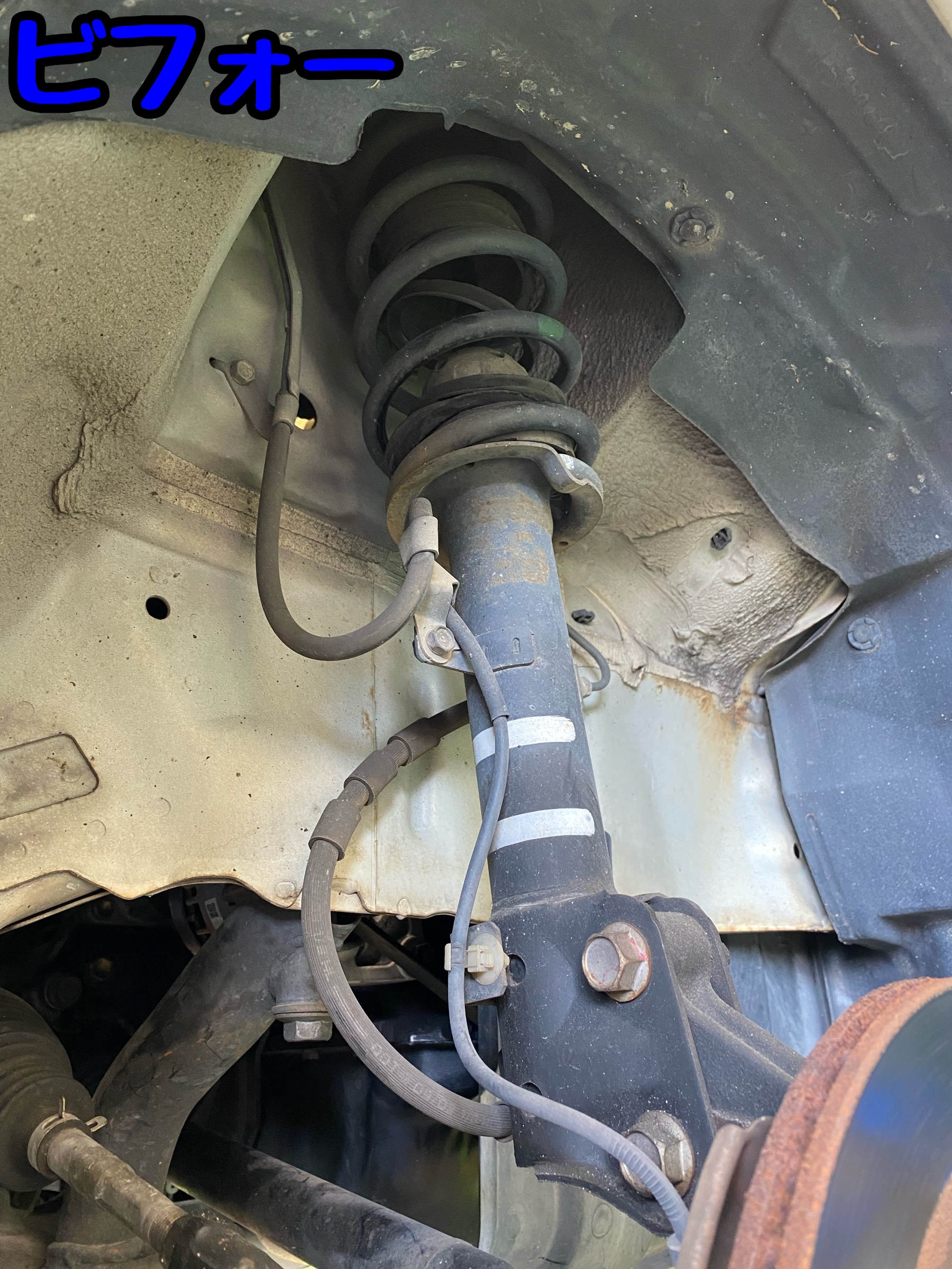 フロントのダストブーツの劣化、ショックのヘタリ、