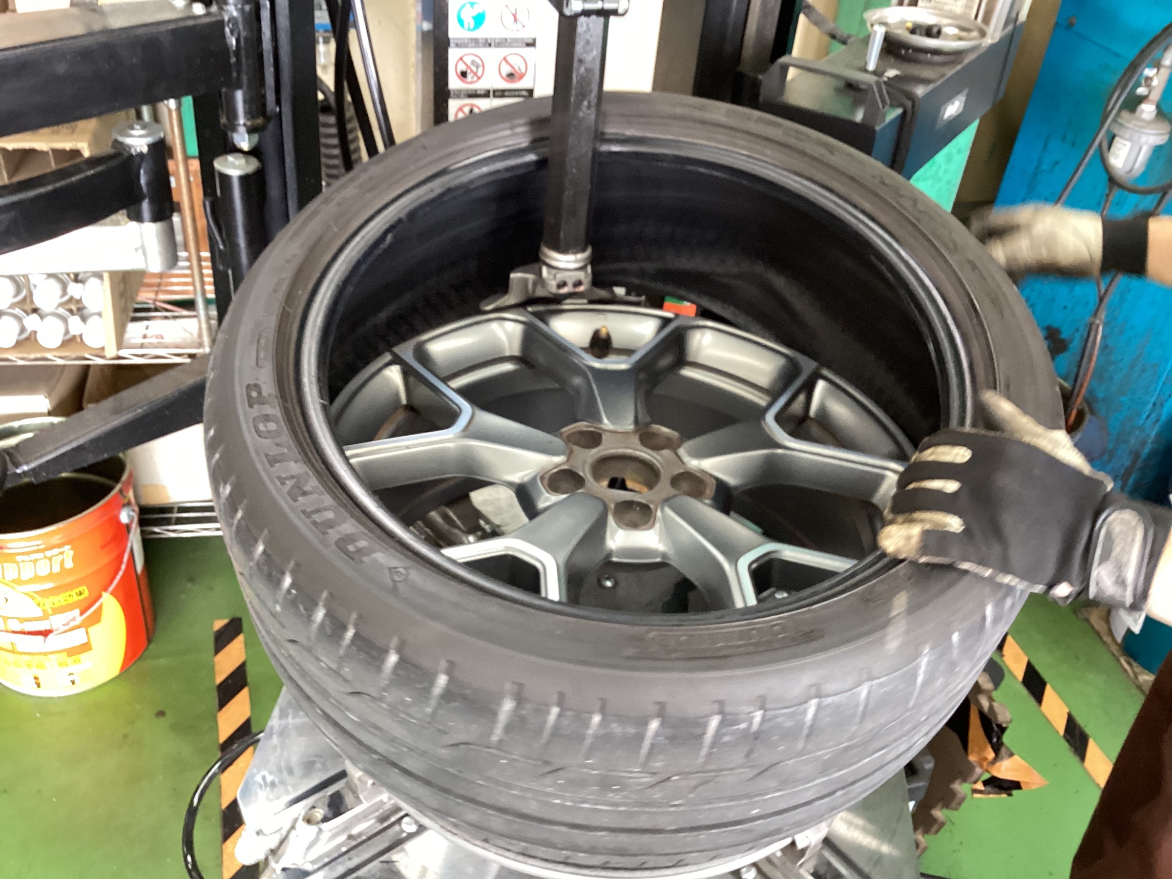 まずは古いタイヤを取り外し、