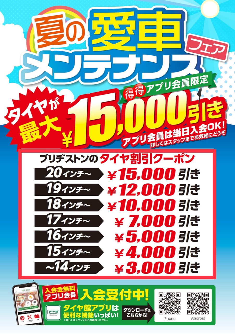プレミアムセール期間中はタイヤ館アプリ登録で