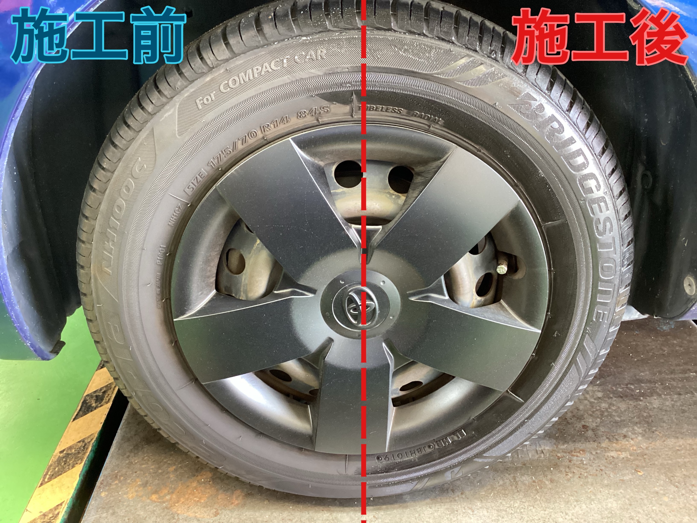 タイヤの汚れや、色褪せを解消したり、