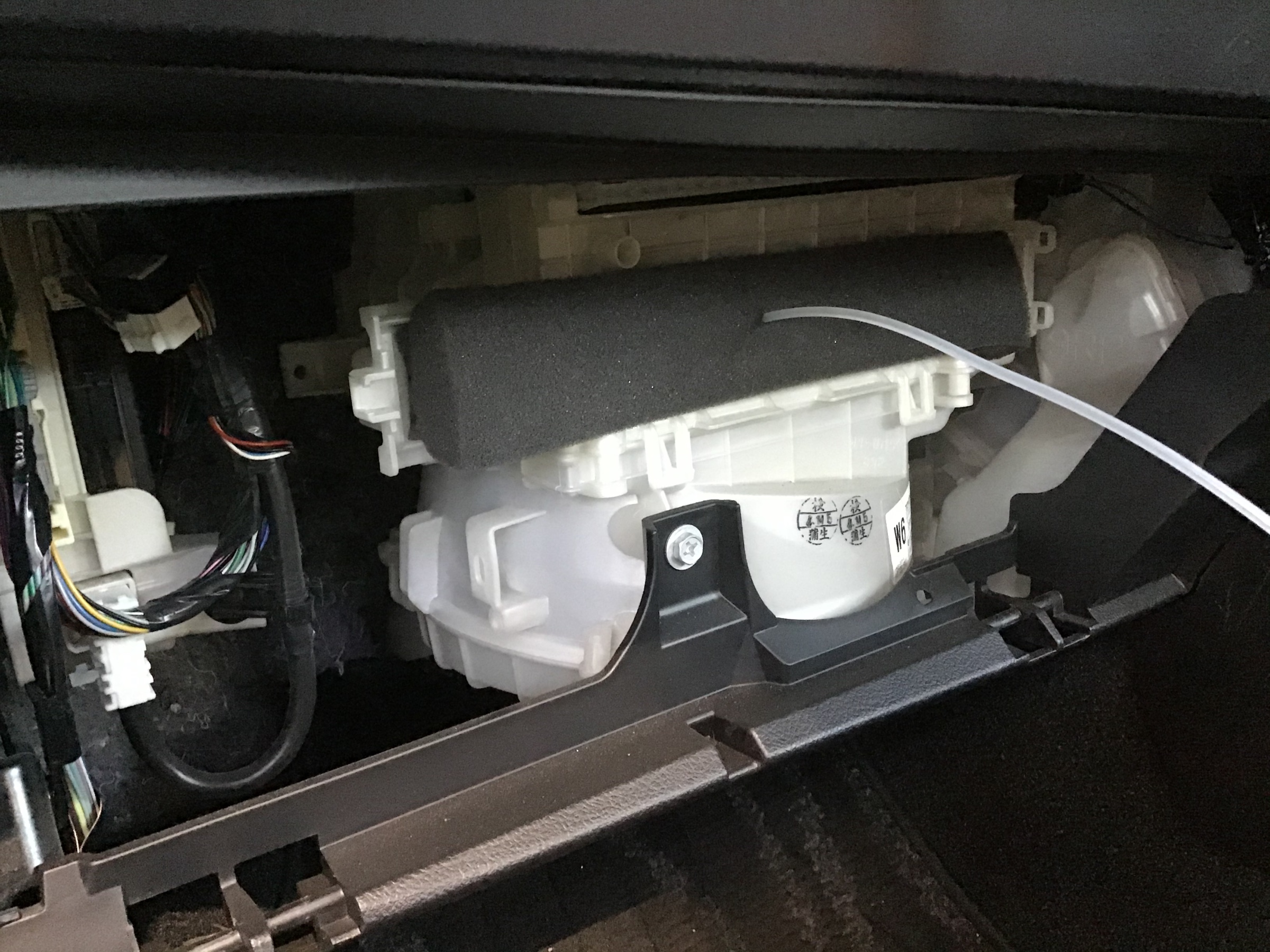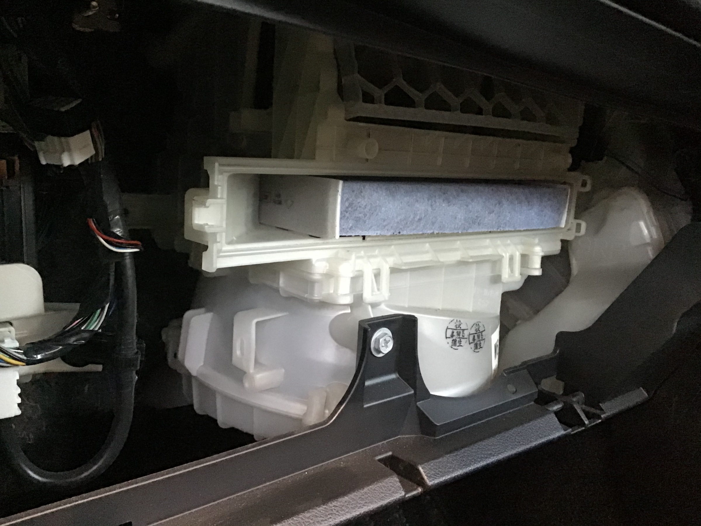 グローブボックスを開けて、エアコンフィルターを取り出します。
