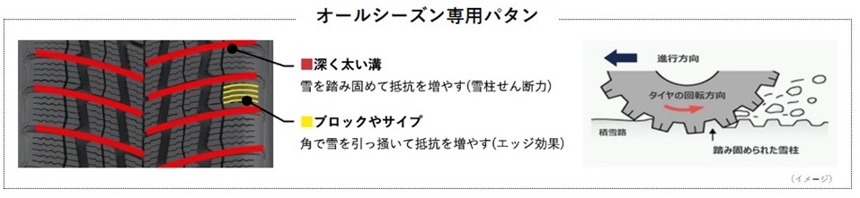 オールシーズンタイヤ専用パターンがしっかりと雪をグリップします。