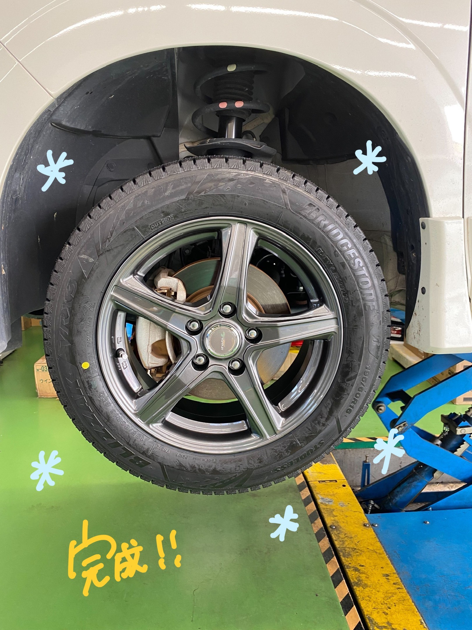 今回は「スタッドレスタイヤ交換」を
