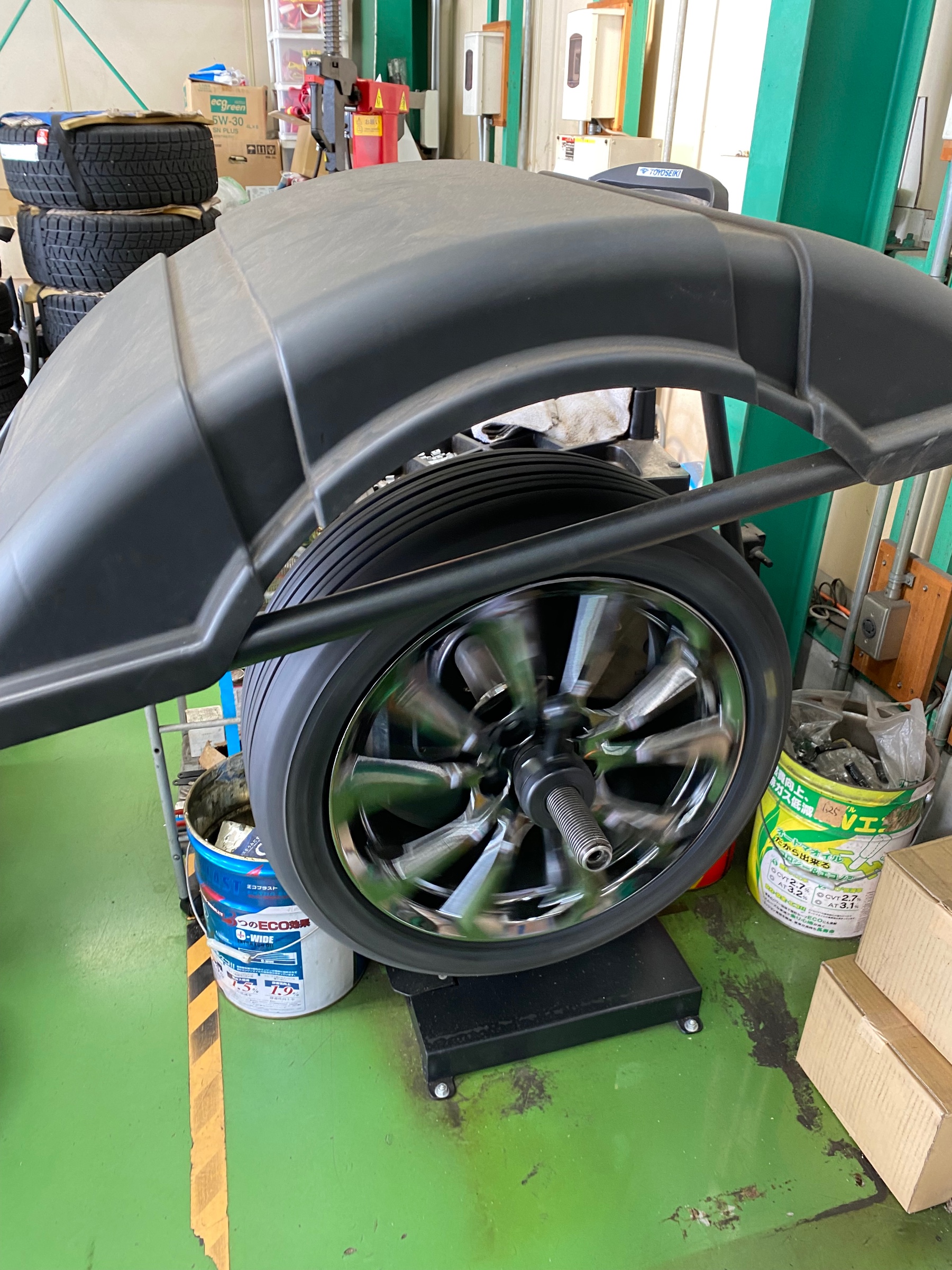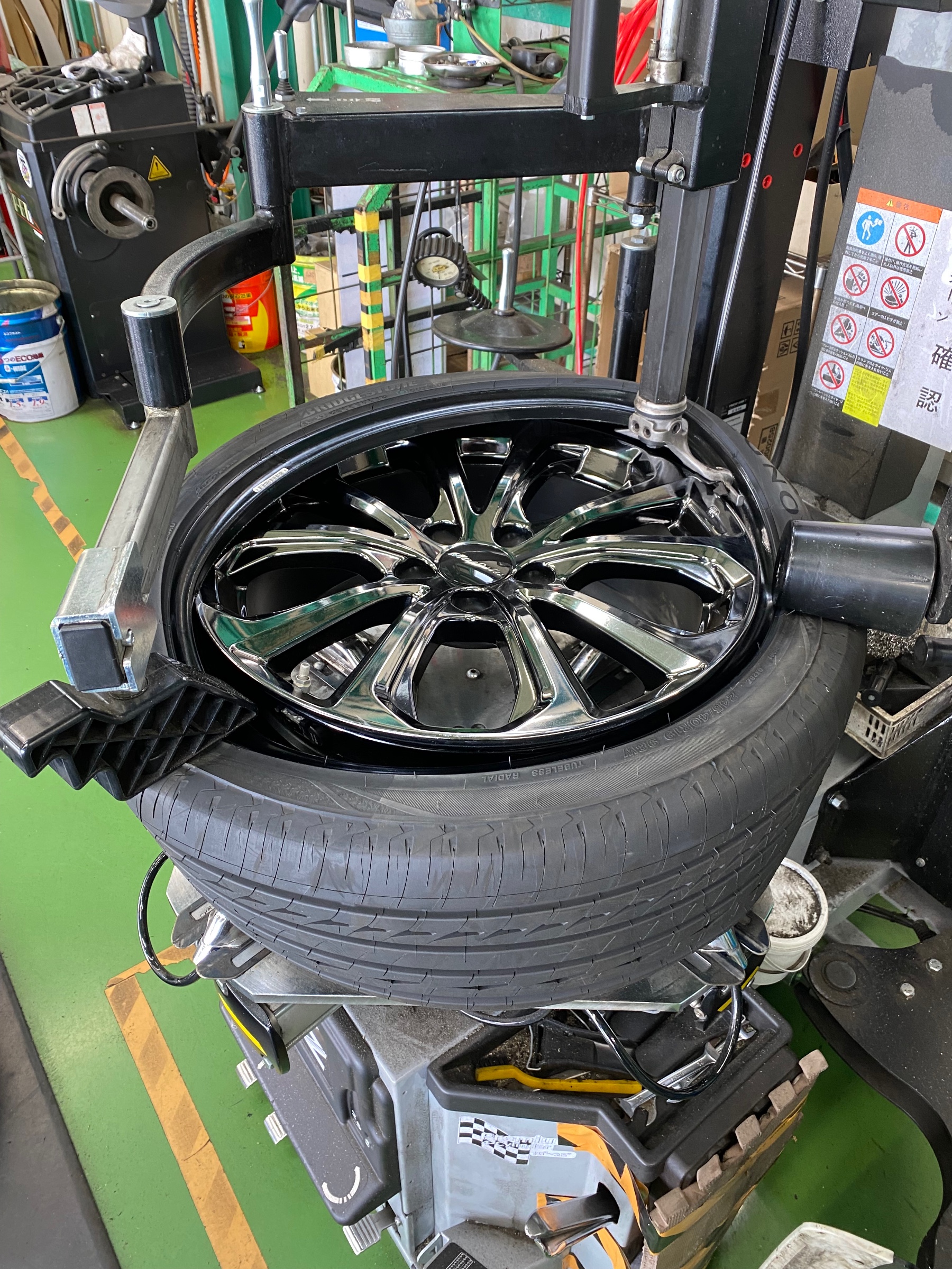 タイヤチェンジーで丁寧に確実に組み付けていきます!