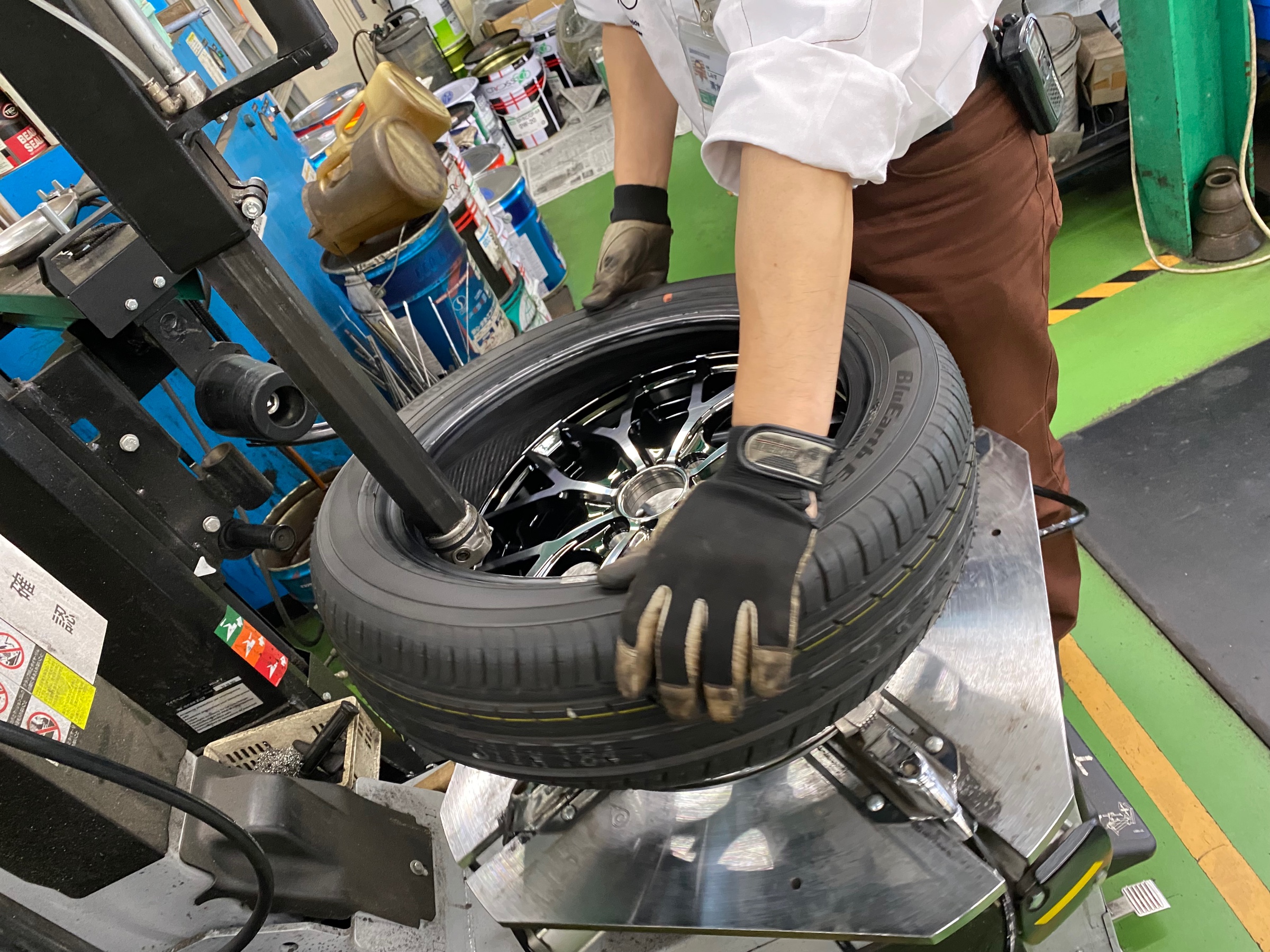 新車装着タイヤをバラし、丁寧にアルミホイールへ