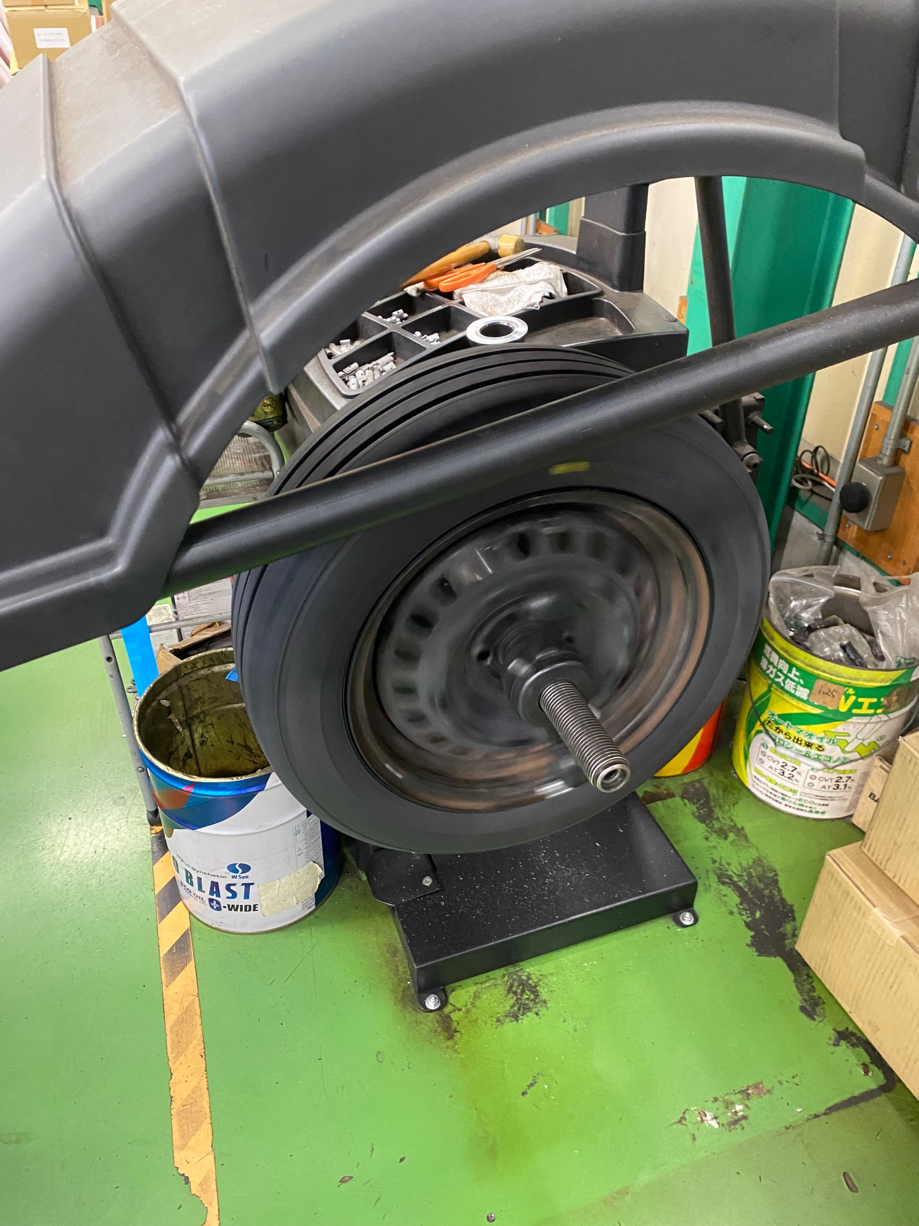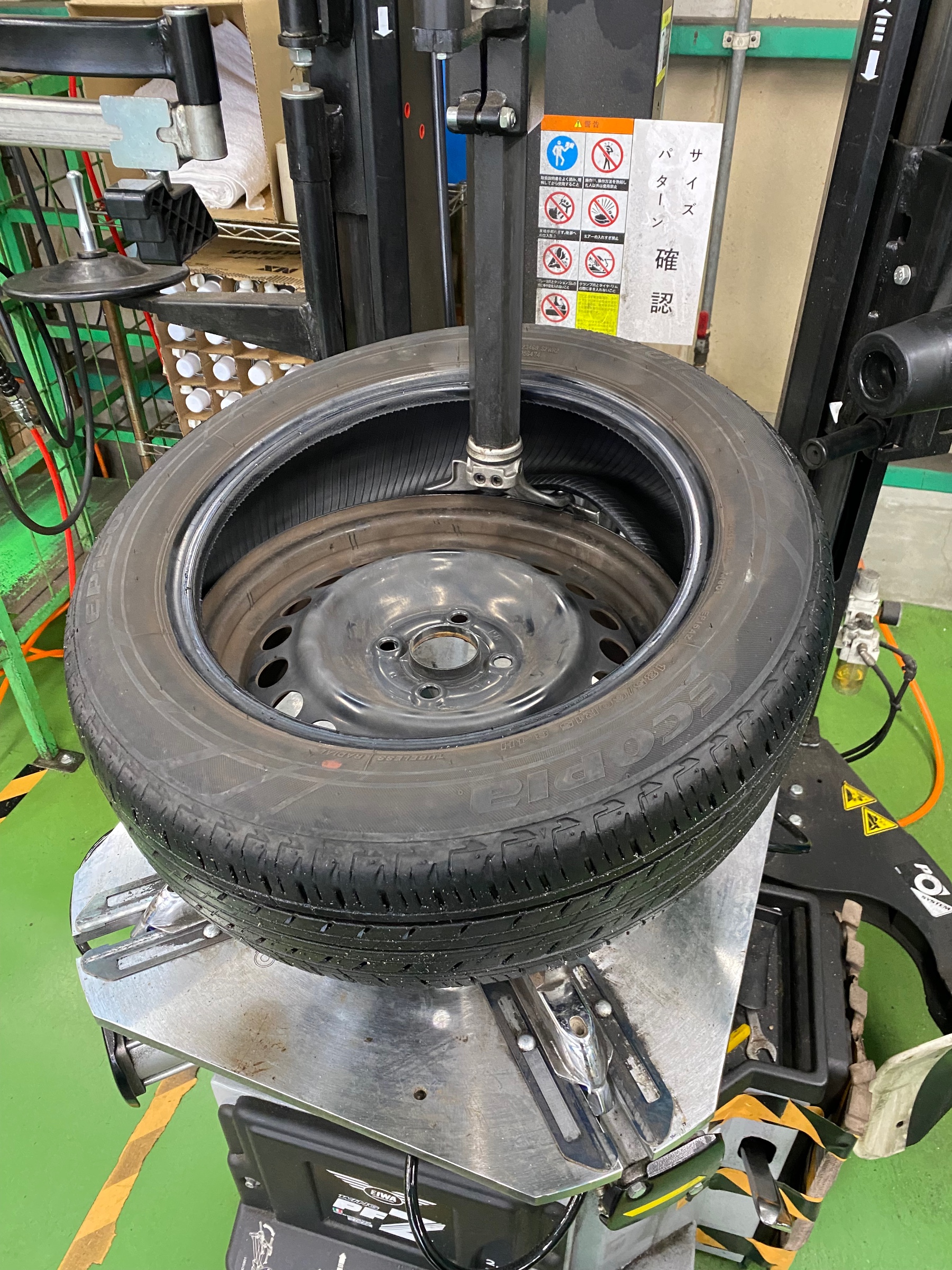 タイヤチェンジャーで古いタイヤを