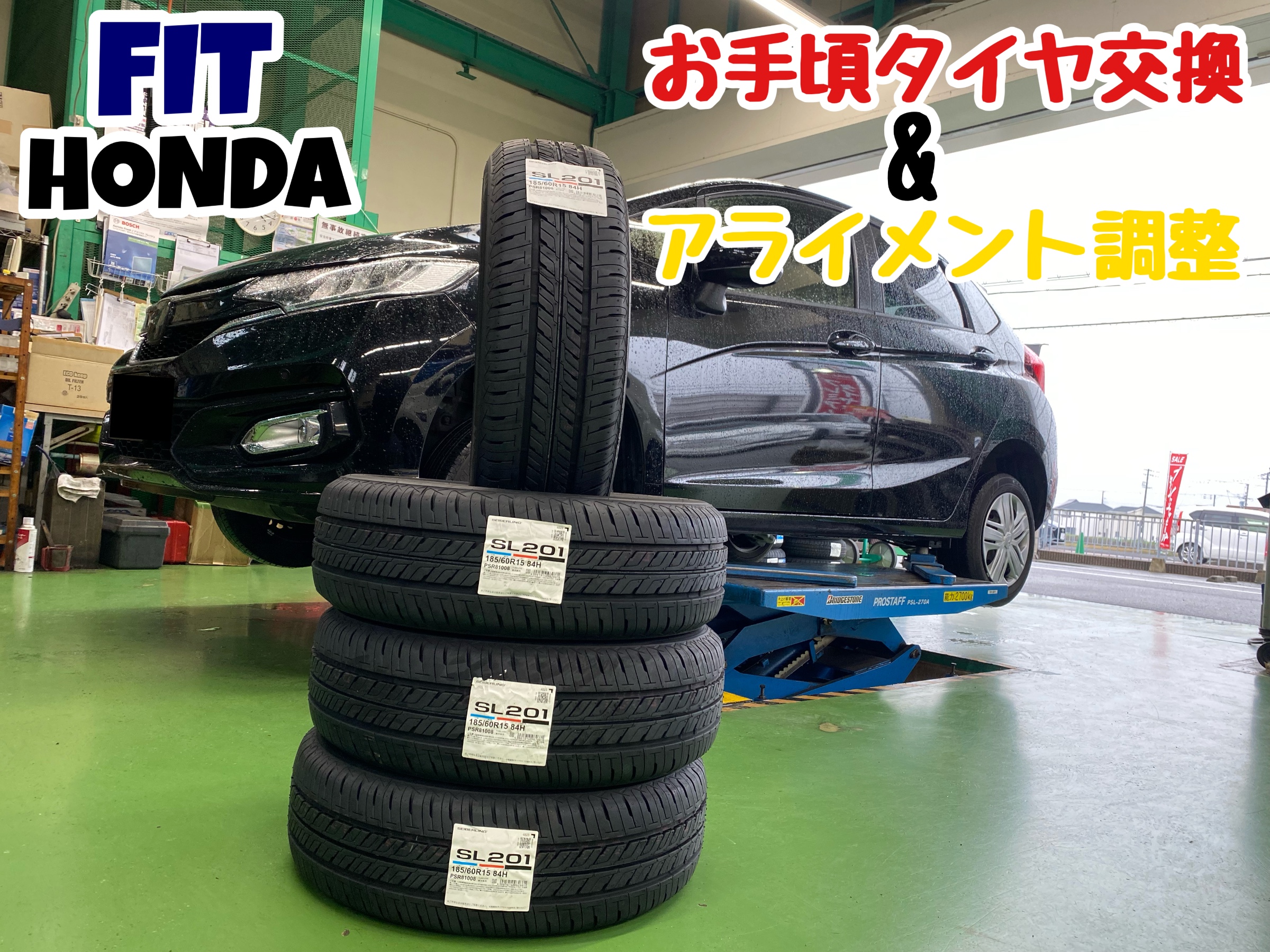 フィット『お手頃タイヤ交換&アライメント調整』♩