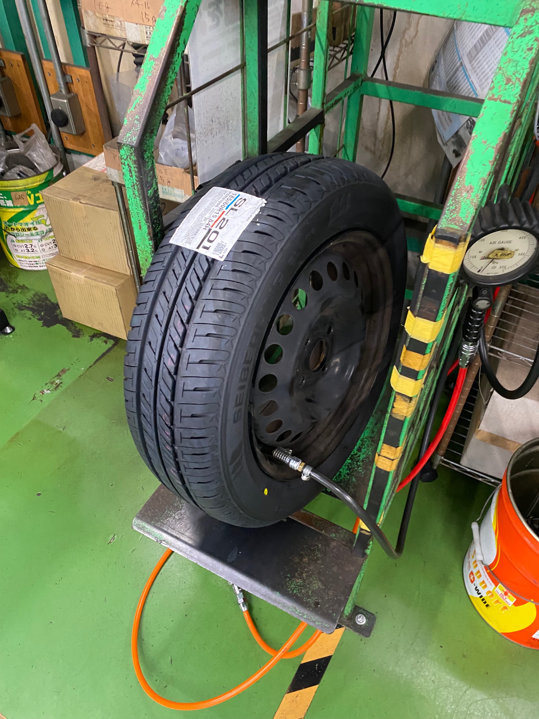 新しいタイヤをホイールに組み付けて